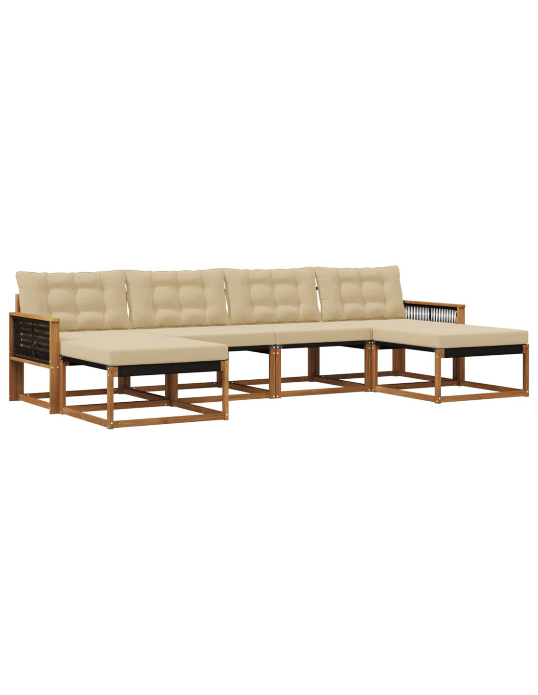 Il set di mobili da esterno unisce stile e funzionalità, diventando un punto focale unico per ogni giardino o terrazza. Il design moderno, con linee pulite e dettagli semplici, aggiunge un tocco di eleganza e favorisce il relax all'aperto e le socializzazioni. Fatto interamente in legno massello di acacia, il set assicura robustezza e un aspetto sempre bello, perfetto per chi cerca praticità e uno stile ricercato nei mobili da esterno. Legno massello di acacia resistente: Questo set è costruito in legno massello di acacia, noto per la sua solidità e resistenza alle intemperie. La struttura robusta offre ottimo supporto e durata, mentre il calore del legno naturale arricchisce qualsiasi giardino o terrazza. Design anti intemperie: La superficie laccata di questo set fornisce uno strato extra di protezione contro sole e pioggia leggera. La finitura lucida preserva l'aspetto e la funzionalità, garantendo una lunga durata per il tuo spazio esterno. Componenti e design: Ogni pezzo, dai braccioli agli schienali, è pensato per coniugare stile e praticità. Le caratteristiche di supporto aumentano il comfort, mentre il design armonioso rende il set adatto a molte occasioni all'aperto. Comfort e adattabilità: Il design modulare consente di configurare il set per vari spazi e esigenze. Perfetto per il relax, incontri o momenti di lettura, si adatta senza problemi a ogni ambiente esterno, offrendo comfort e funzionalità. Facile manutenzione: Per mantenere il mobile in ottime condizioni, puliscilo con un panno umido e evita detergenti aggressivi. La cura regolare mantiene l'aspetto e prolunga la vita utile dei mobili.