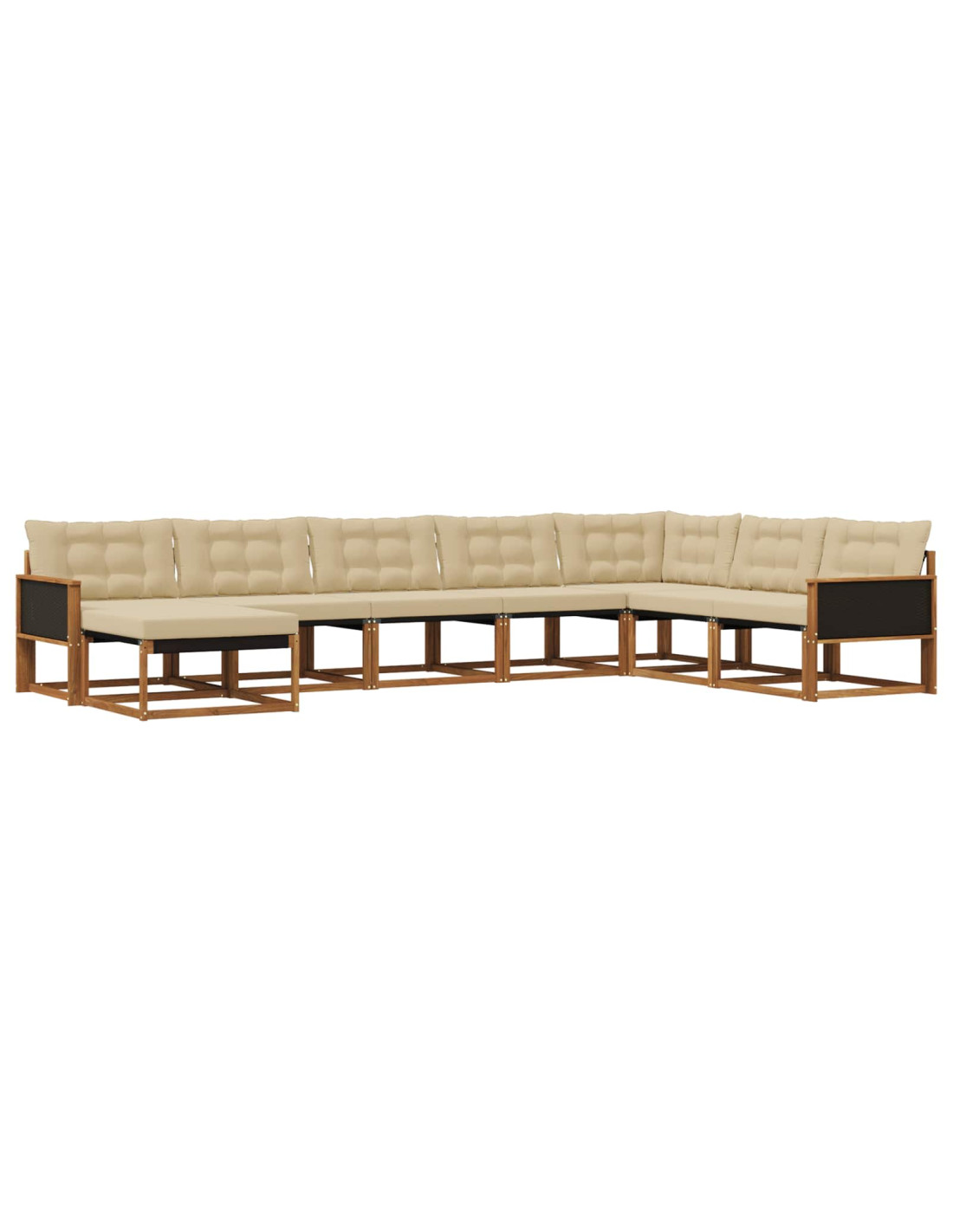 Questo set di divani moderno è fatto in legno massello di acacia, combina robustezza, comfort e bellezza, ed è perfetto per spazi all'aperto come giardini e terrazze. Il suo stile contemporaneo si integra bene con le texture naturali del legno, creando una vista piacevole per socializzare o rilassarsi nella natura. Materiali premium: Costruito in robusto legno massello di acacia, questo set di divani è ben fatto e resiste alle condizioni esterne. La resistenza naturale del legno con il Textilene offre durata e poca manutenzione, rendendolo una soluzione elegante e duratura per il relax all'aperto. Componenti inclusi: La struttura resistente si abbina a materiali per seduta e schienale in Textilene per comfort e supporto. I braccioli in legno massello di acacia aggiungono un bel tocco e comfort. I cuscini esterni con rivestimenti rimovibili offrono morbidezza ad ogni seduta. Caratteristiche funzionali: Progettato per non sbiadire e facile da pulire, lo schienale ergonomico assicura comfort prolungato durante lunghi momenti all'aperto. I braccioli pratici supportano una postura naturale, creando un'atmosfera accogliente per serate indimenticabili all’aperto. Utilizzi consigliati: Da raduni informali in giardino a feste in terrazza, il set di divani è perfetto per ogni tipo di incontro all'aperto. La sua eleganza minimalista amplifica l'atmosfera, adattandosi sia a tranquille serate in famiglia che a vivaci eventi sociali. Cura e manutenzione: Mantieni questo fantastico set da esterno con semplici routine. Pulisci regolarmente con un panno umido per rimuovere la polvere, così il tuo investimento in mobili da esterno rimarrà brillante nel tempo.