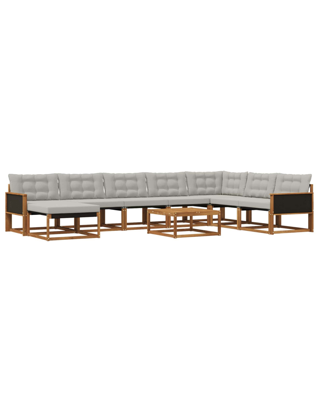 Questo set di divani da esterno elegante è l'ideale per rendere speciale ogni giardino o terrazza. Con uno stile moderno e una finitura in legno naturale, si integra perfettamente nell'ambiente esterno, offrendo un posto accogliente per rilassarsi o intrattenere. Il suo bel marrone resistente allo sbiadimento aggiunge un tocco chic, assicurando che rimanga un punto di riferimento nel tuo outdoor per anni. Materiali: Realizzato in legno massello di acacia, questo set di divani da esterno unisce una finitura marrone elegante a durata ed eleganza. L'acacia resiste alle intemperie, mantenendo la bellezza delle sue venature nel tempo. Componenti inclusi: Offre sedute ampie, cuscini esterni morbidi in schiuma con coperture removibili. Braccioli e schienali in Textilene aumentano il confort, perfetti per lunghe ore di relax. Caratteristiche / Funzioni / Design: Presenta un design resistente allo sbiadimento che garantisce un aspetto duraturo. Cuscini spessi offrono comfort, e la superficie facile da pulire rende semplice mantenere il look elegante. Usi consigliati: Ideale per giardini e terrazze, questo set è perfetto per eventi o semplici momenti di relax. La sua estetica moderna si adatta a qualsiasi situazione, rendendolo versatile per incontri sociali. Manutenzione: Per tenerlo sempre al top, basta pulire con un panno umido. Così rimane sempre pronto per incontri improvvisi o momenti di tranquillità.