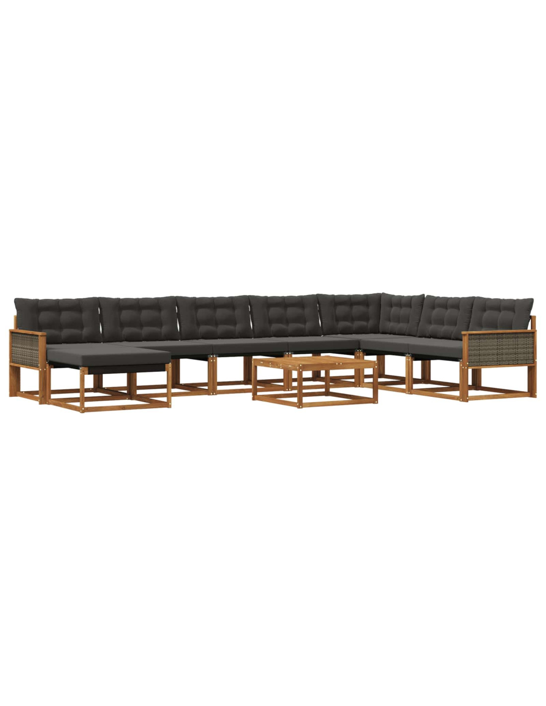 Set di divani da esterno con cuscino 9 pcs Naturale e Nero