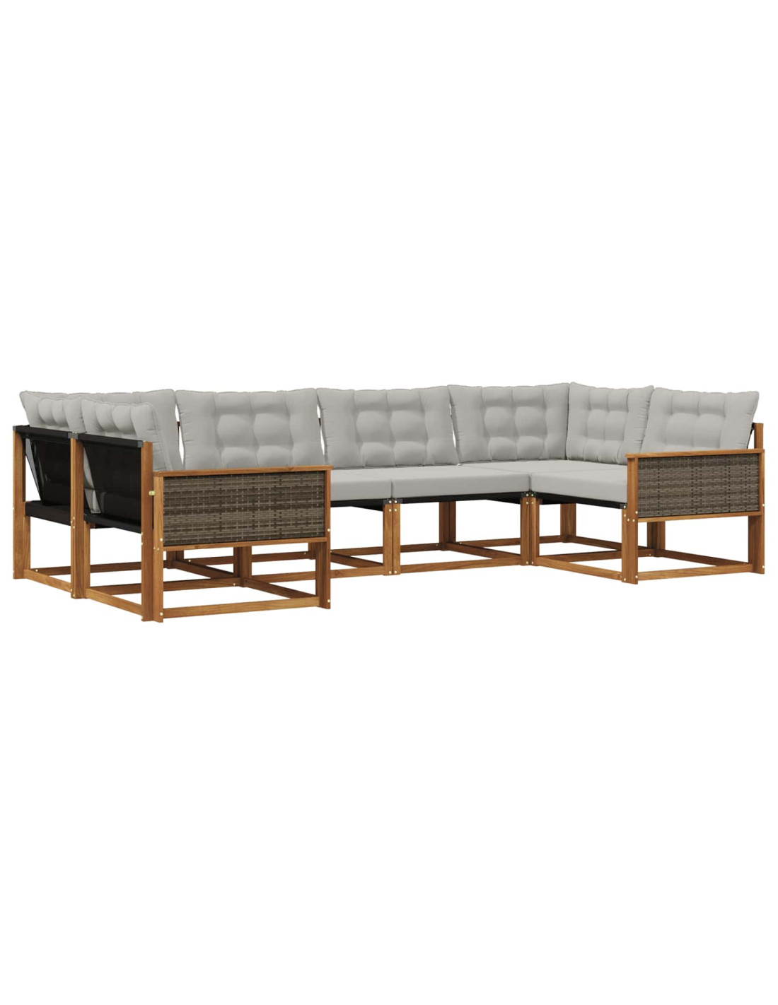 Il set di mobili da esterno combina stile e funzionalità, diventando il punto focale di ogni giardino o terrazza. Il design moderno, con linee pulite e dettagli minimali, porta eleganza e favorisce il relax e la socializzazione all'aperto. Realizzato interamente in legno massello di acacia, questo set è resistente e bello da vedere, perfetto per chi cerca praticità senza rinunciare a un tocco di classe nei mobili da esterno. Legno Massello di Acacia Durevole: Questo set è realizzato in legno massello di acacia, noto per la sua robustezza e resistenza. La costruzione solida offre stabilità e migliora l'atmosfera di giardini e terrazzi. Design Resistente alle Intemperie: Le superfici verniciate offrono protezione contro sole e pioggia leggera. La finitura lucida conserva l'aspetto e la funzionalità, per una lunga durata all'aperto. Componenti & Design: Ogni elemento, dai braccioli agli schienali, punta su stile e funzionalità. Le caratteristiche di supporto aggiungono comfort, mentre il design coeso regala un insieme armonioso perfetto per molte occasioni esterne. Comfort & Versatilità: Il design modulare permette configurazioni versatili per spazi diversi. Ottimo per rilassarsi, fare socialità o leggere, si adatta facilmente a ogni ambiente, massimizzando comfort e usabilità. Facile Cura e Manutenzione: Per mantenere il set in ottime condizioni, basta pulirlo con un panno umido, evitando detergenti aggressivi. Una pulizia regolare conserva il suo aspetto e ne prolunga la durata.