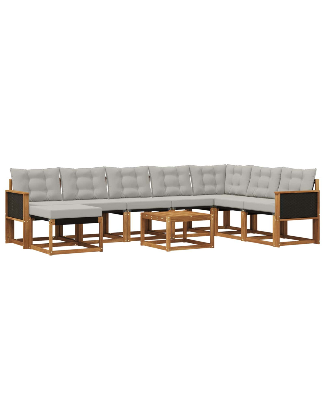Set di divani da esterno 9 pcs Naturale e Grigio chiaro
