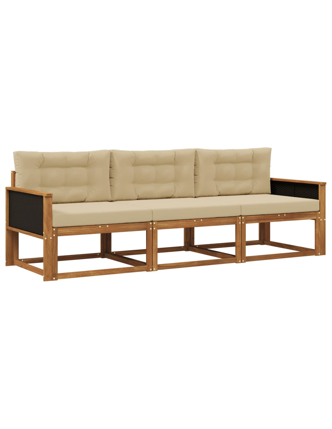 Set di divani da esterno con cuscino 3 pcs Naturale e Beige