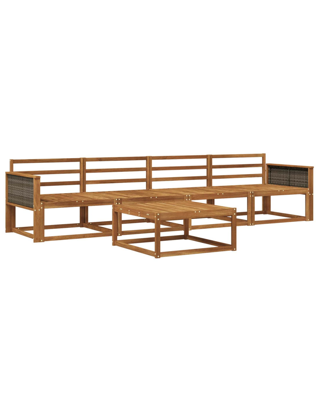 Questo set di divani modulari da esterno è il massimo per il living all'aperto moderno, unendo eleganza e funzionalità. Perfetto per un relax chic in giardini, patii o vicino alla piscina, crea un'atmosfera accogliente grazie alle sue linee pulite e minimalista. Il legno di acacia marrone naturale si integra bene in ogni contesto esterno, invitando a rilassarsi in totale comfort.