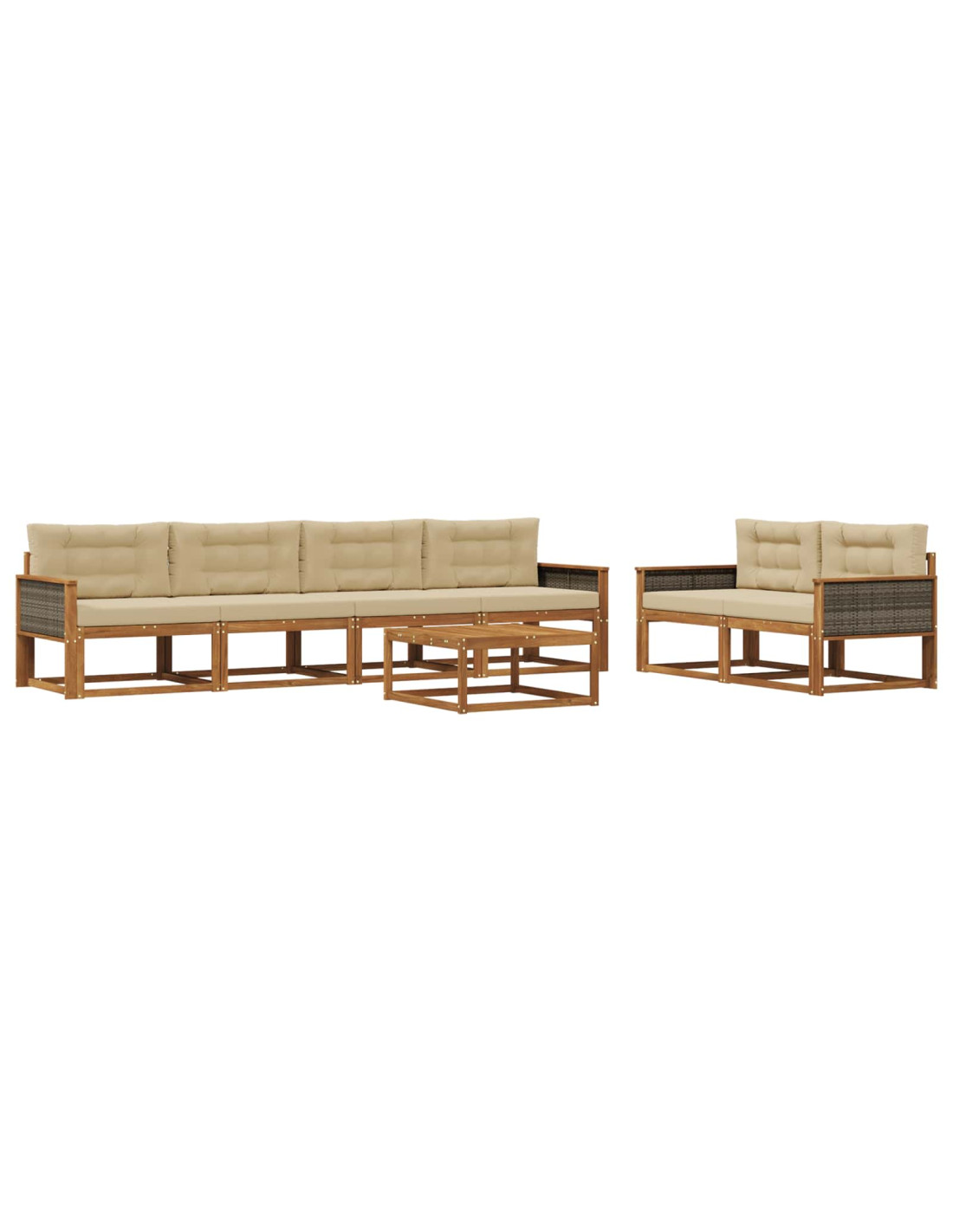 Set di divani da esterno con cuscino 7 pcs Naturale e Beige