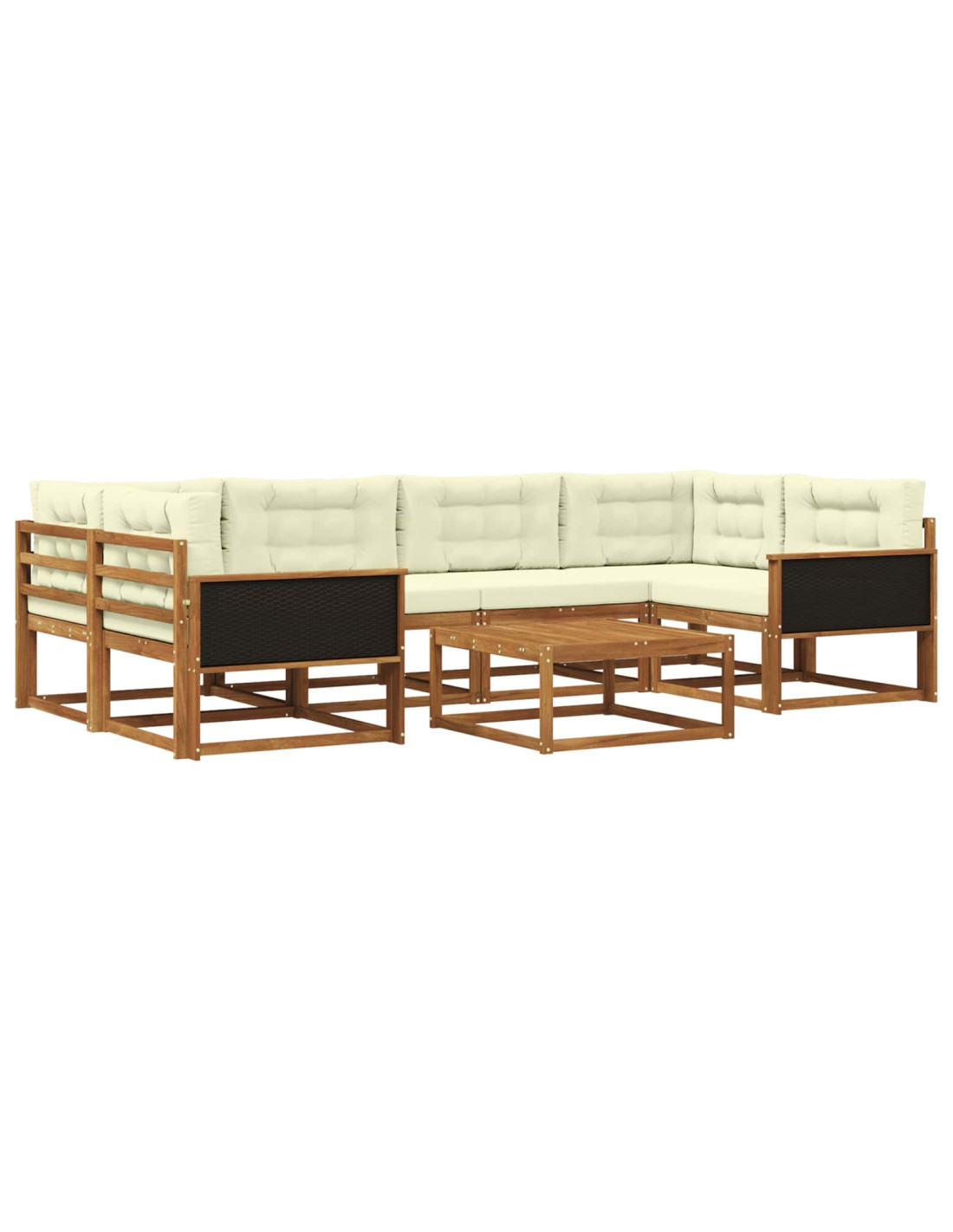 Questo set di divani da esterno è l'aggiunta ideale per qualsiasi giardino, patio o area piscina. Offre posti a sedere robusti per momenti con la famiglia o per rilassarsi tranquillamente. Il design moderno con linee pulite e l'uso del legno massello di acacia ne fanno un pezzo elegante e resistente nel tempo. Il colore marrone caldo dona un'atmosfera accogliente, valorizzando il tuo spazio esterno e permettendoti di riadattarlo come vuoi.”]},{ Materiali: Questo set di divani è fatto in legno massello di acacia, che non è solo bello ma anche resistente. Il legno tiene bene all'aperto e mantiene il suo fascino nel tempo. Componenti inclusi: Ha uno schienale a doghe ben progettato e braccioli pratici per una seduta confortevole. Con una base robusta, è perfetto per goderti il tuo tempo all'aperto in sicurezza. Caratteristiche / Funzione / Design: Unisce un design a doghe con schienale di supporto e braccioli pratici. La costruzione modulare permette di modificarlo in diverse configurazioni per ogni evento e situazione. Utilizzi consigliati: È l'ideale da posizionare in giardini, patii o aree piscina. Perfetto per accogliere ospiti o semplicemente per goderti un momento da solo. Si adatta a ogni stile di arredamento esterno. Cura e manutenzione: Per mantenerlo in ottime condizioni, utilizza una copertura quando non lo usi, limita l'esposizione al sole e puliscilo con un panno umido per rimuovere a polvere. Segui questi semplici passaggi e il tuo set di divani resterà sempre splendido.”