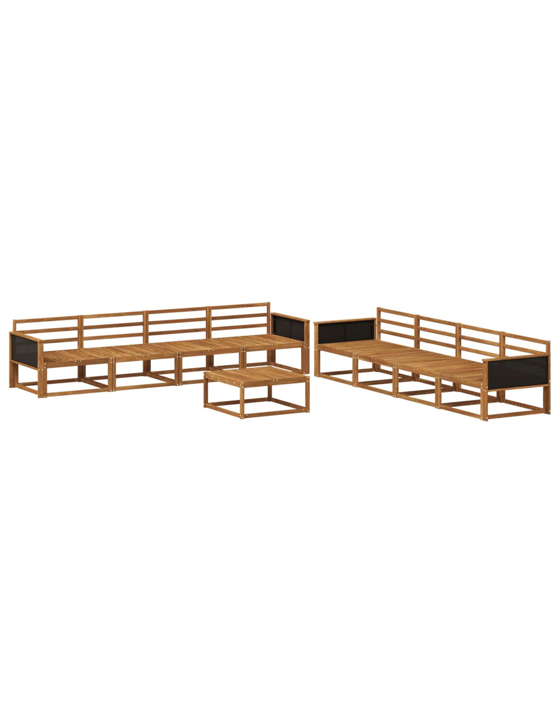 Questo elegante set di divani modulari per esterni trasforma il tuo giardino, patio o area piscina in un luogo di comfort e stile. Realizzato in legno massello di acacia, noto per la sua durata e calore, il set presenta un'affascinante tonalità marrone con un design moderno. La sua forma accogliente invita a rilassarsi e stare insieme. Che tu stia organizzando una festa o cercando un posto dove rifugiarti, questo set bilancia utilità ed estetica, regalando un'esperienza serena all'aperto. Composizione in legno di acacia: Questo set di divani è fatto in legno massello di acacia, famoso per la sua resistenza e bellezza naturale. La sua grana elegante e il colore caldo si integrano perfettamente con l'ambiente esterno, aggiungendo un tocco di rusticità. Struttura a doghe fisse: Perfetto per l'esterno, questo set ha una robusta struttura a doghe fisse. Le doghe sono progettate per drenare l'acqua, proteggendo il divano dai danni della pioggia. Questo design non solo offre solidità ma mantiene il divano comodo sia al sole che all'ombra. Proprietà resistenti alle intemperie: Creato per l'uso esterno, il set ha qualità resistenti alle intemperie, proteggendolo dalla pioggia e dal sole. Che ci siano tempeste estive o forti raggi UV, il set mantiene la sua bellezza e integrità, offrendoti una soluzione comoda all'aperto che richiede poca manutenzione. Assemblaggio facile: Mettere insieme il set è semplice e richiede solo due persone e un cacciavite. Le istruzioni sono chiare, rendendo il montaggio un compito veloce, così potrai goderti subito i tuoi nuovi mobili. Questo metodo pratico rende il tutto facile per chi deve montare il set nel proprio spazio esterno. Consigliamo cura regolare: Anche se è resistente, il set gode di un po'di manutenzione per mantenere la sua bellezza. Usare coperture protettive quando non lo usi e pulirlo con un panno umido aiuteranno a mantenerlo fresco. Questa cura può allungare la vita dei mobili e mantenere l'eleganza e il comfort che dovrebbero portare nel tuo spazio.