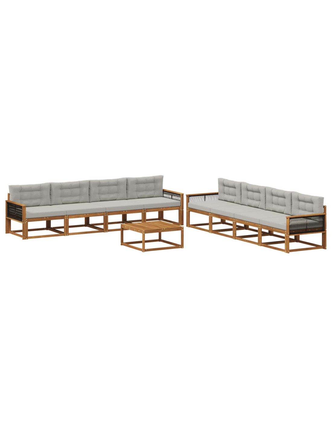 Set di divani da esterno 9 pcs Naturale e Grigio chiaro