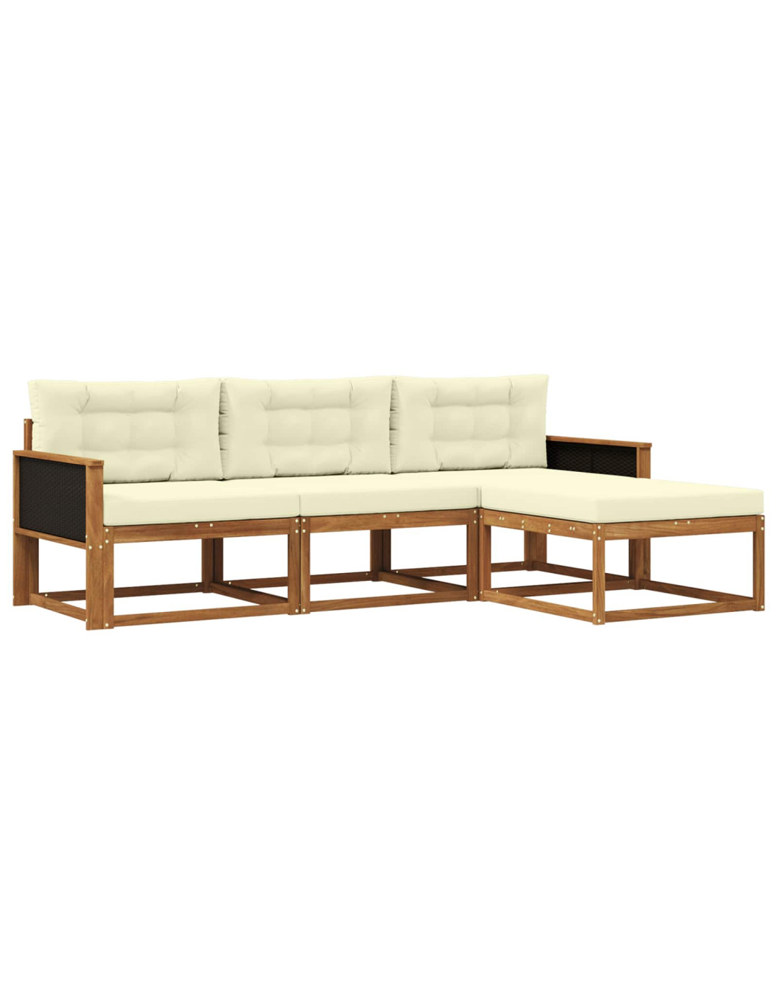 Questo set di divani modulari da esterno rappresenta l'eleganza moderna con il suo design raffinato, ideale per trasformare ogni giardino, patio o area vicino alla piscina in uno spazio perfetto per rilassarsi e socializzare. Realizzato in legno massello di acacia con una calda tonalità marrone, non solo migliora l'aspetto estetico, ma offre anche una base forte che resiste a vari tipi di