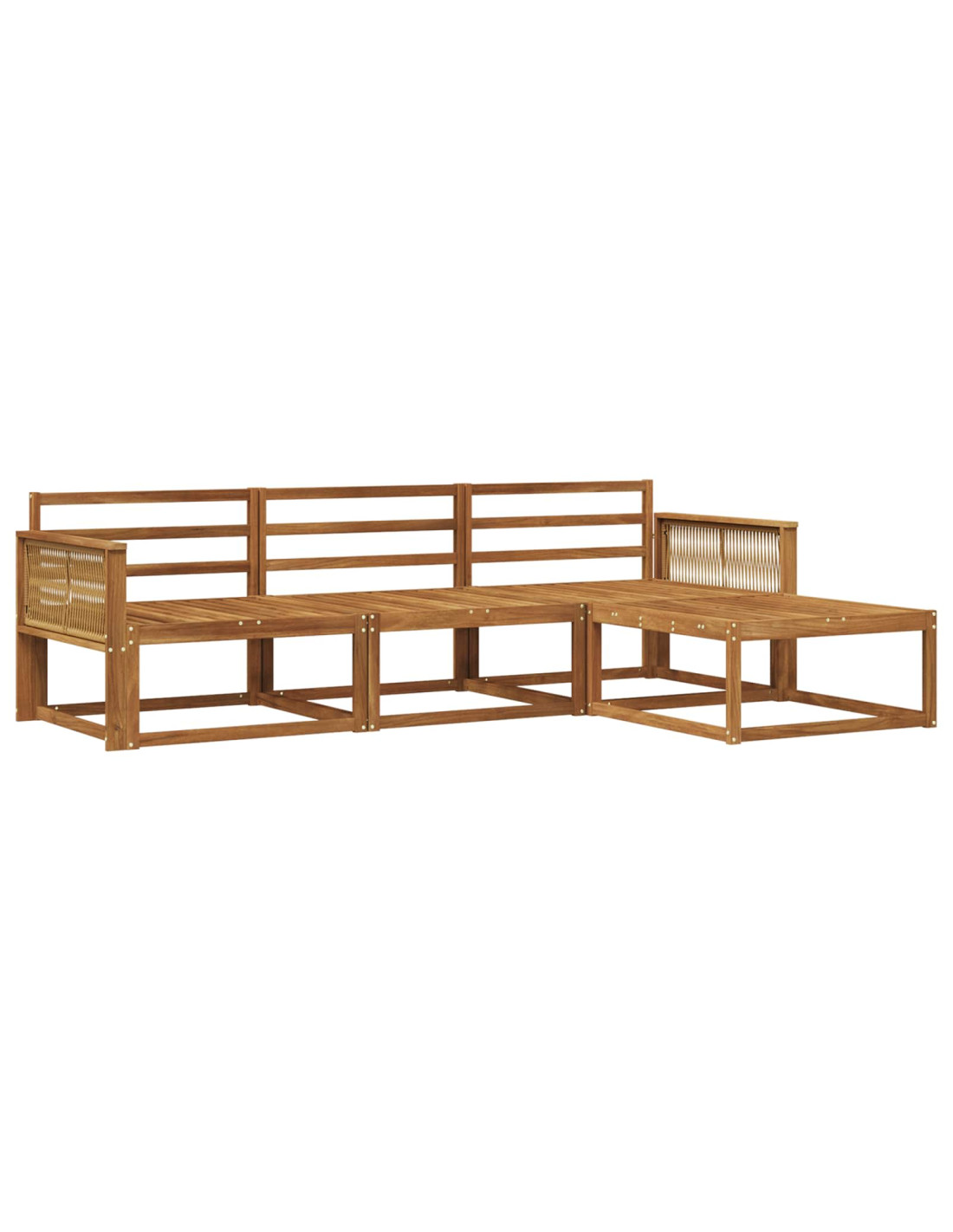 Questo set di divani modulari da esterno rappresenta l'eleganza moderna con il suo design raffinato, ideale per trasformare ogni giardino, patio o area vicino alla piscina in uno spazio perfetto per rilassarsi e socializzare. Realizzato in legno massello di acacia con una calda tonalità marrone, non solo migliora l'aspetto estetico, ma offre anche una base forte che resiste a vari tipi di clima. La sua costruzione modulare permette di adattarlo a qualsiasi dimensione, offrendoti flessibilità e creatività nell'organizzazione. Costruzione in legno massello di acacia Questo set di divani modulari è fatto in legno massello di acacia, noto perché è resistente e si adatta perfettamente all'esterno. La calda finitura marrone si integra con qualsiasi stile di arredo esterno, mentre la sua natura resistente assicura che i mobili rimangano belli e forti nel tempo. Il legno massello di acacia aggiunge un tocco di rusticità senza tempo al tuo spazio. Design modulare Questo set di divani presenta un design modulare che ti permette di personalizzare le disposizioni per adattarsi a qualsiasi giardino o patio. Il telaio con schienale a doghe migliora stile e funzionalità, aggiungendo un look moderno e consentendo un drenaggio veloce della pioggia, evitando l'accumulo d'acqua e prolungando la vita dei tuoi mobili. Finitura resistente alle intemperie Creato per funzionare all'aperto, questo set modulare ha una finitura resistente alle intemperie, così i tuoi mobili manterranno il loro colore e la loro integrità anche con diverse condizioni climatiche. Dalle giornate di sole ai temporali, questo set è fatto per resistere. Comfort ergonomico Ti offre un comfort impareggiabile grazie allo schienale a doghe, perfetto per rilassarsi dopo una lunga giornata. Lo schienale ergonomico, fatto di legno massello di acacia, sostiene bene la postura, offrendo un mix unico di supporto e comodità, invitandoti a goderti momenti di relax prolungati. Cura e manutenzione semplice Per mantenere la qualità del tuo set di divani, è consigliato coprirli quando non li usi. Evita starli sotto il sole diretto per conservare la tonalità calda del legno e pulisci le superfici con un panno umido per rimuovere sporco e detriti. Queste semplici azioni garantiscono anni di utilizzo con poca manutenzione.