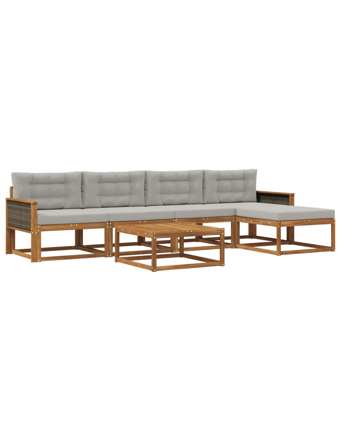 Questo set di divani sezionali per esterni è davvero elegante e offre una soluzione moderna e stilosa per ogni patio o giardino. Con linee pulite e un design contemporaneo, è realizzato in legno massello di acacia che è noto per la sua resistenza e la sua bellissima venatura. La tonalità marrone calda aggiunge un tocco di sofisticatezza, rendendo questo set un centro di attrazione negli spazi esterni. Perfetto per accogliere amici o semplicemente per una serata tranquilla, si adatta a qualsiasi stile di giardino creando un'atmosfera accogliente. Legno massello di acacia: Ogni pezzo è realizzato in legno massello di acacia, per una resistenza eccezionale e un look senza tempo. La sua venatura naturale rende l'arredo ancora più bello negli spazi esterni, mantenendo la struttura solida nel tempo. Design a doghe: Il design a doghe della schiena e del telaio non è solo gradevole ma favorisce anche il flusso d'aria, mantenendoti fresco anche nei giorni caldi. Perfetto per chi cerca uno stile funzionale. Costruzione resistente alle intemperie: Questo set di divani è realizzato per resistere a tutte le condizioni atmosferiche, con capacità di resistere a umidità e raggi UV. È una scelta sicura per sedersi all'aperto in ogni stagione. Flessibilità modulare: Con un design modulare, puoi facilmente riordinare i pezzi per adattarli al tuo spazio e alle tue occasioni, passando facilmente da riunioni intime a feste più grandi. Manutenzione semplice: Mantieni il set in ottimo stato con pochi sforzi; basta un panno umido per pulirlo e utilizzare una copertura quando non è in uso, per proteggere la finitura e mantenere la sua bellezza nel tempo.