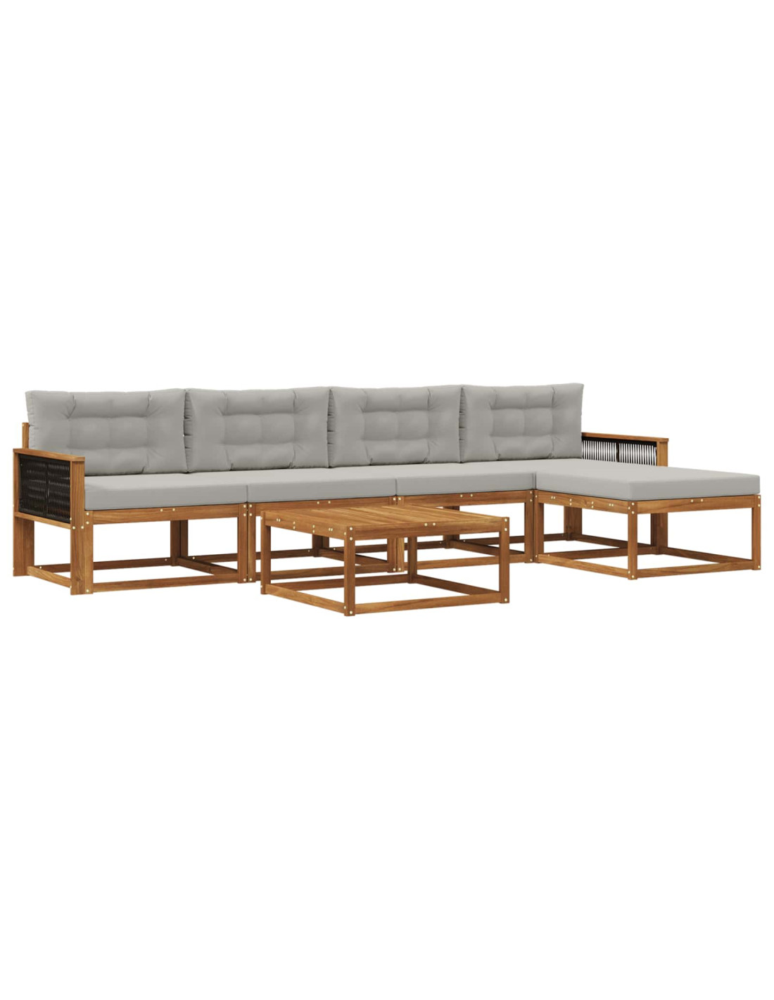 Questo set di divani sezionali per esterni è davvero elegante e offre una soluzione moderna e stilosa per ogni patio o giardino. Con linee pulite e un design contemporaneo, è realizzato in legno massello di acacia che è noto per la sua resistenza e la sua bellissima venatura. La tonalità marrone calda aggiunge un tocco di sofisticatezza, rendendo questo set un centro di attrazione negli spazi esterni. Perfetto per accogliere amici o semplicemente per una serata tranquilla, si adatta a qualsiasi stile di giardino creando un'atmosfera accogliente. Legno massello di acacia: Ogni pezzo è realizzato in legno massello di acacia, per una resistenza eccezionale e un look senza tempo. La sua venatura naturale rende l'arredo ancora più bello negli spazi esterni, mantenendo la struttura solida nel tempo. Design a doghe: Il design a doghe della schiena e del telaio non è solo gradevole ma favorisce anche il flusso d'aria, mantenendoti fresco anche nei giorni caldi. Perfetto per chi cerca uno stile funzionale. Costruzione resistente alle intemperie: Questo set di divani è realizzato per resistere a tutte le condizioni atmosferiche, con capacità di resistere a umidità e raggi UV. È una scelta sicura per sedersi all'aperto in ogni stagione. Flessibilità modulare: Con un design modulare, puoi facilmente riordinare i pezzi per adattarli al tuo spazio e alle tue occasioni, passando facilmente da riunioni intime a feste più grandi. Manutenzione semplice: Mantieni il set in ottimo stato con pochi sforzi; basta un panno umido per pulirlo e utilizzare una copertura quando non è in uso, per proteggere la finitura e mantenere la sua bellezza nel tempo.