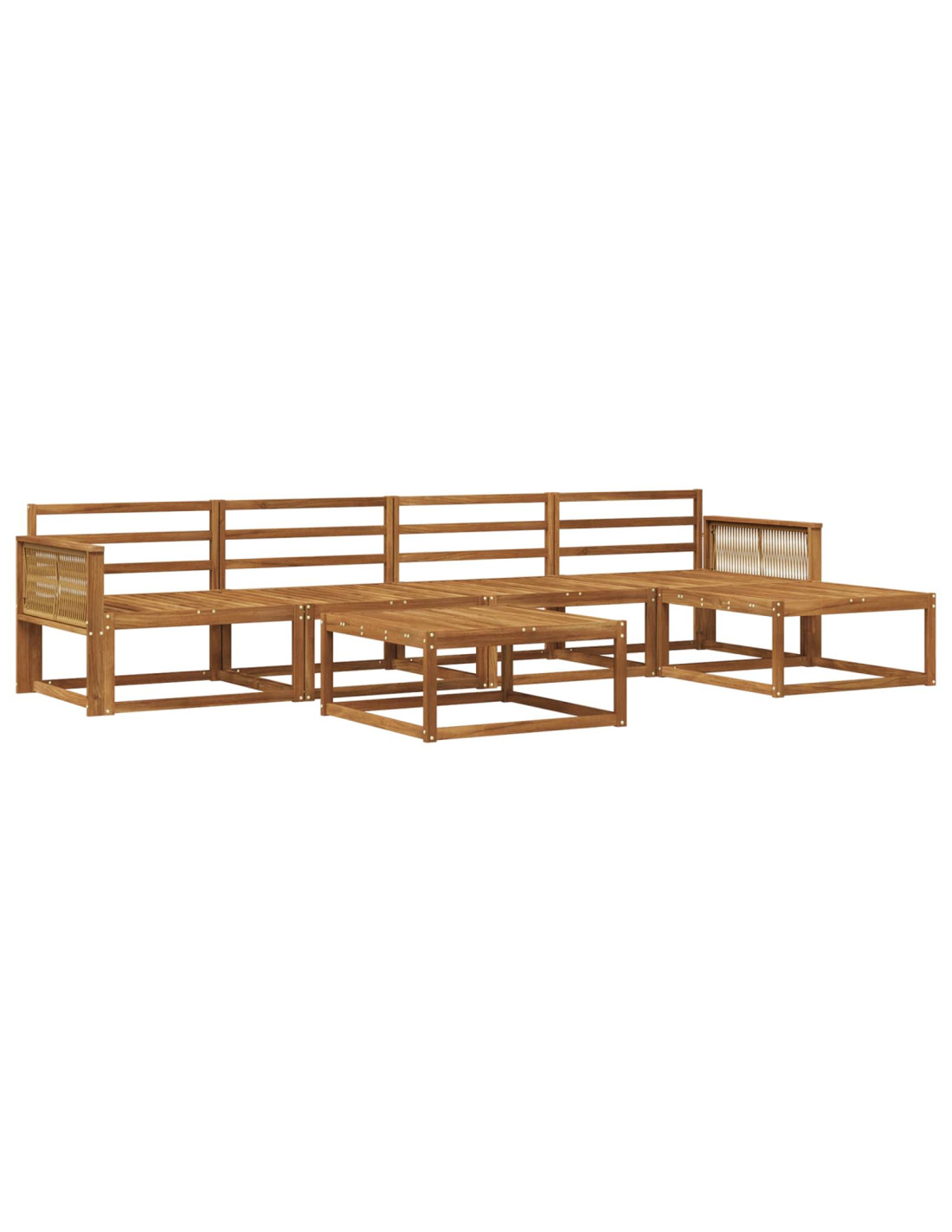 Questo set di divani sezionali per esterni è davvero elegante e offre una soluzione moderna e stilosa per ogni patio o giardino. Con linee pulite e un design contemporaneo, è realizzato in legno massello di acacia che è noto per la sua resistenza e la sua bellissima venatura. La tonalità marrone calda aggiunge un tocco di sofisticatezza, rendendo questo set un centro di attrazione negl
