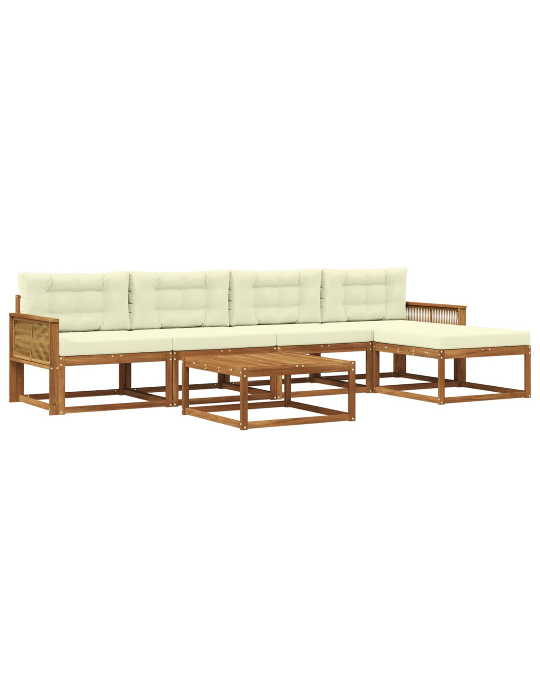 Questo set di divani sezionali per esterni è davvero elegante e offre una soluzione moderna e stilosa per ogni patio o giardino. Con linee pulite e un design contemporaneo, è realizzato in legno massello di acacia che è noto per la sua resistenza e la sua bellissima venatura. La tonalità marrone calda aggiunge un tocco di sofisticatezza, rendendo questo set un centro di attrazione negli spazi esterni. Perfetto per accogliere amici o semplicemente per una serata tranquilla, si adatta a qualsiasi stile di giardino creando un'atmosfera accogliente. Legno massello di acacia: Ogni pezzo è realizzato in legno massello di acacia, per una resistenza eccezionale e un look senza tempo. La sua venatura naturale rende l'arredo ancora più bello negli spazi esterni, mantenendo la struttura solida nel tempo. Design a doghe: Il design a doghe della schiena e del telaio non è solo gradevole ma favorisce anche il flusso d'aria, mantenendoti fresco anche nei giorni caldi. Perfetto per chi cerca uno stile funzionale. Costruzione resistente alle intemperie: Questo set di divani è realizzato per resistere a tutte le condizioni atmosferiche, con capacità di resistere a umidità e raggi UV. È una scelta sicura per sedersi all'aperto in ogni stagione. Flessibilità modulare: Con un design modulare, puoi facilmente riordinare i pezzi per adattarli al tuo spazio e alle tue occasioni, passando facilmente da riunioni intime a feste più grandi. Manutenzione semplice: Mantieni il set in ottimo stato con pochi sforzi; basta un panno umido per pulirlo e utilizzare una copertura quando non è in uso, per proteggere la finitura e mantenere la sua bellezza nel tempo.