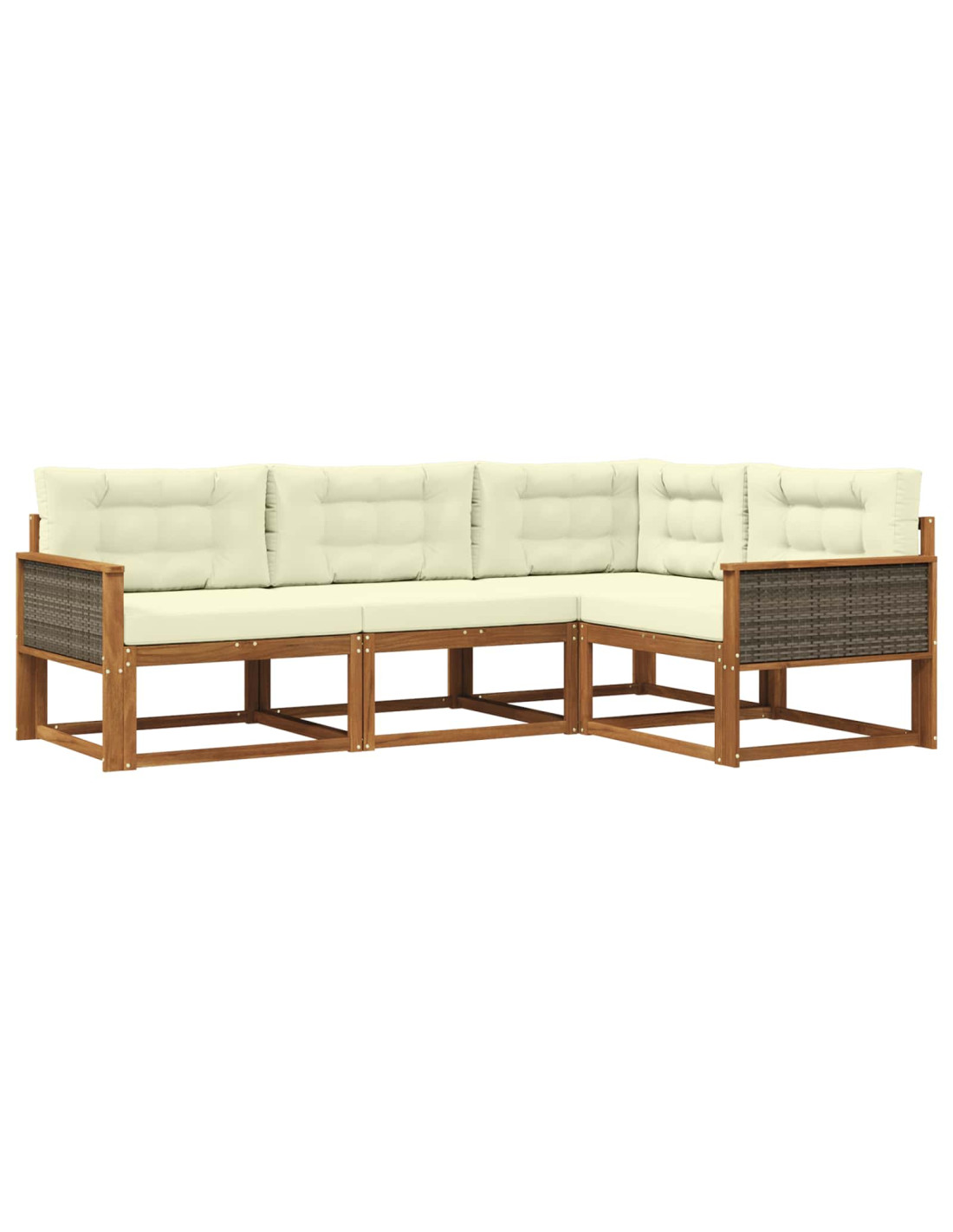 Questo set di divani angolari da esterno mixa perfettamente un design moderno con una funzionalità che dura nel tempo, rendendolo un'ottima scelta per giardini o patii. Le linee pulite e le decorazioni minimali gli danno uno stile contemporaneo, mentre ti assicura una seduta comoda. Il colore marrone del legno si integra bene negli spazi all'aperto, creando un'oasi di relax. Che tu voglia