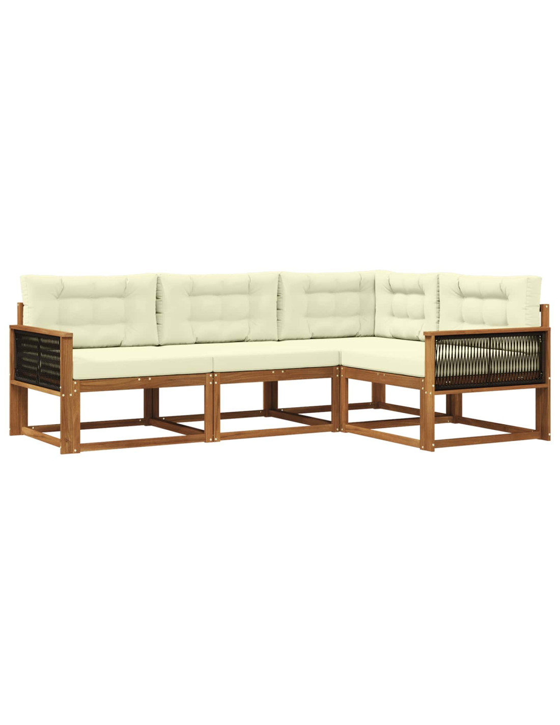 Questo set di divani angolari da esterno mixa perfettamente un design moderno con una funzionalità che dura nel tempo, rendendolo un'ottima scelta per giardini o patii. Le linee pulite e le decorazioni minimali gli danno uno stile contemporaneo, mentre ti assicura una seduta comoda. Il colore marrone del legno si integra bene negli spazi all'aperto, creando un'oasi di relax. Che tu voglia prendere il sole a bordo piscina o organizzare una cena in giardino, questo set è perfetto per aggiungere un tocco di eleganza. Legno Massello di Acacia Durevole: Tutti i divani sono fatti di legno massello di acacia, famoso per la sua forza e resistenza agli agenti atmosferici. Con la sua tonalità marrone, non solo aggiunge calore, ma è anche progettato per durare, dandoti tranquillità per i tuoi mobili da esterno. Design con Schienale a Doghe: Con una struttura a doghe, questo design migliora la ventilazione e il comfort, supportando bene la schiena e permettendo il passaggio d’aria. Perfetto per lunghe ore all’aperto, combina bellezza e praticità, dando comfort e stile. Flessibilità Modulare: Progettato per essere modulare, puoi cambiarne la configurazione a seconda di ciò che ti serve. Che tu abbia spazi ristretti o grandi raduni da organizzare, questa versatilità lo rende perfetto per ogni esigenza. Braccioli di Supporto: I braccioli in legno massello di acacia offrono ulteriore comfort, rendendo l’esperienza di seduta ancora migliore. Inoltre, migliorano l’aspetto generale, offrendo un posto dove rilassarsi. Cura & Manutenzione Facile: La manutenzione è semplicissima, basta un panno umido per pulire. Evita di esporre i mobili al sole diretto e coprili quando non li usi per mantenerli in ottimo stato. Con poche e semplici attenzioni, potrai goderti il tuo set a lungo nel tempo.