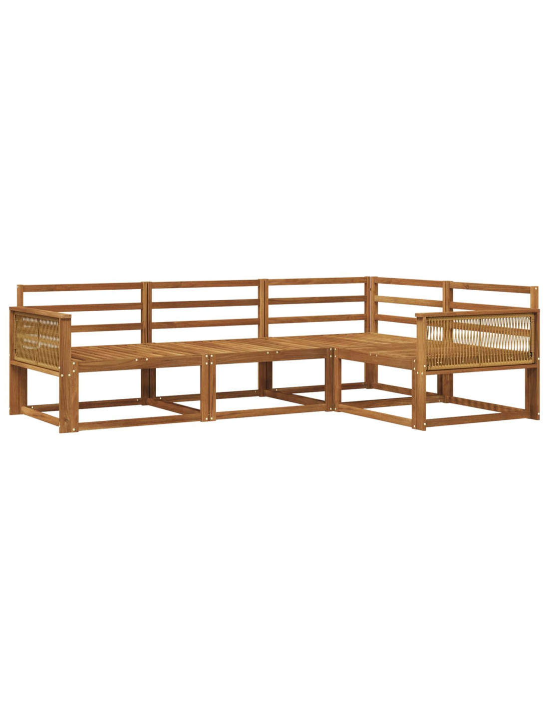 Questo set di divani angolari da esterno mixa perfettamente un design moderno con una funzionalità che dura nel tempo, rendendolo un'ottima scelta per giardini o patii. Le linee pulite e le decorazioni minimali gli danno uno stile contemporaneo, mentre ti assicura una seduta comoda. Il colore marrone del legno si integra bene negli spazi all'aperto, creando un'oasi di relax. Che tu voglia prendere il sole a bordo piscina o organizzare una cena in giardino, questo set è perfetto per aggiungere un tocco di eleganza. Legno Massello di Acacia Durevole: Tutti i divani sono fatti di legno massello di acacia, famoso per la sua forza e resistenza agli agenti atmosferici. Con la sua tonalità marrone, non solo aggiunge calore, ma è anche progettato per durare, dandoti tranquillità per i tuoi mobili da esterno. Design con Schienale a Doghe: Con una struttura a doghe, questo design migliora la ventilazione e il comfort, supportando bene la schiena e permettendo il passaggio d’aria. Perfetto per lunghe ore all’aperto, combina bellezza e praticità, dando comfort e stile. Flessibilità Modulare: Progettato per essere modulare, puoi cambiarne la configurazione a seconda di ciò che ti serve. Che tu abbia spazi ristretti o grandi raduni da organizzare, questa versatilità lo rende perfetto per ogni esigenza. Braccioli di Supporto: I braccioli in legno massello di acacia offrono ulteriore comfort, rendendo l’esperienza di seduta ancora migliore. Inoltre, migliorano l’aspetto generale, offrendo un posto dove rilassarsi. Cura & Manutenzione Facile: La manutenzione è semplicissima, basta un panno umido per pulire. Evita di esporre i mobili al sole diretto e coprili quando non li usi per mantenerli in ottimo stato. Con poche e semplici attenzioni, potrai goderti il tuo set a lungo nel tempo.