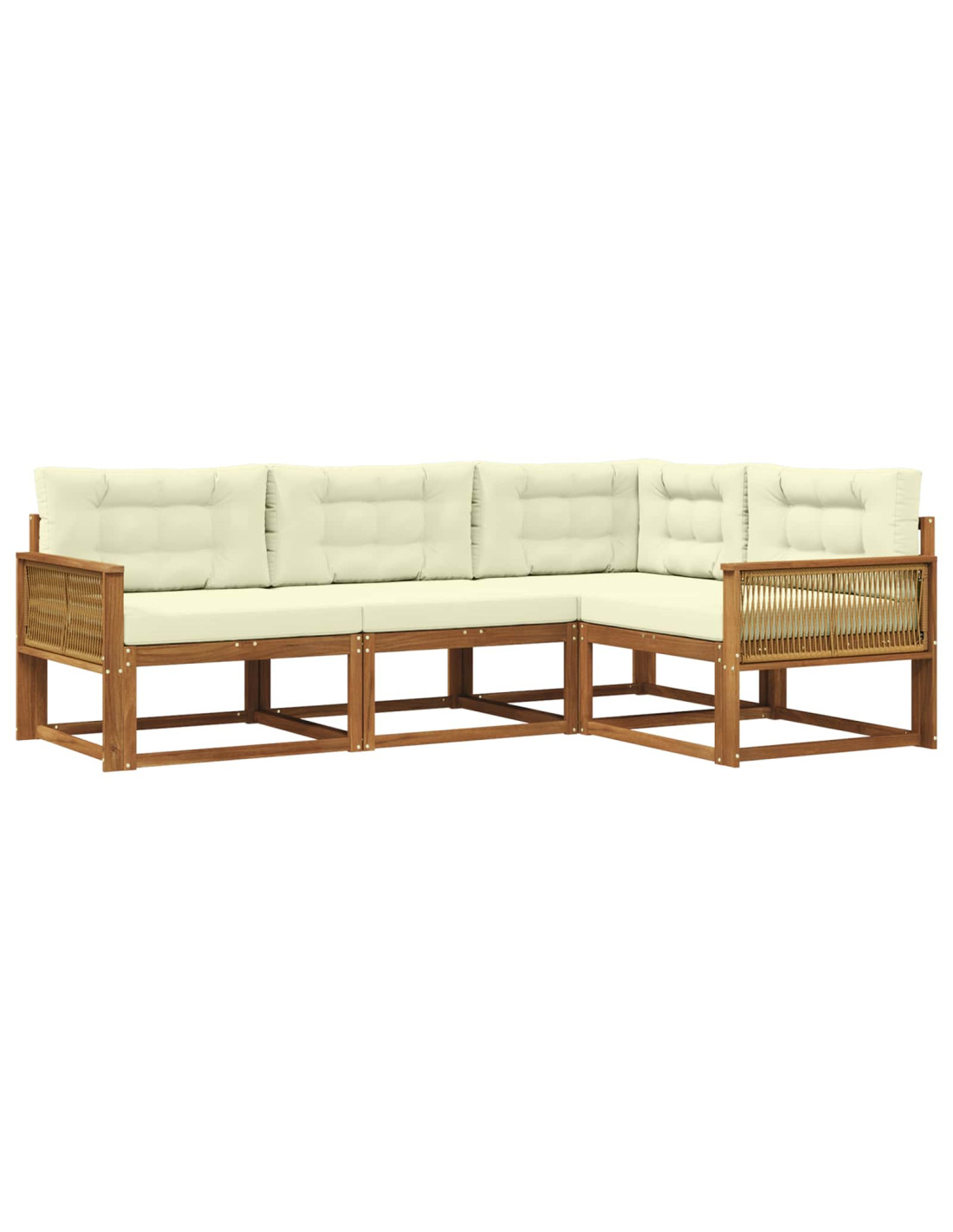 Questo set di divani angolari da esterno mixa perfettamente un design moderno con una funzionalità che dura nel tempo, rendendolo un'ottima scelta per giardini o patii. Le linee pulite e le decorazioni minimali gli danno uno stile contemporaneo, mentre ti assicura una seduta comoda. Il colore marrone del legno si integra bene negli spazi all'aperto, creando un'oasi di relax. Che tu voglia prendere il sole a bordo piscina o organizzare una cena in giardino, questo set è perfetto per aggiungere un tocco di eleganza. Legno Massello di Acacia Durevole: Tutti i divani sono fatti di legno massello di acacia, famoso per la sua forza e resistenza agli agenti atmosferici. Con la sua tonalità marrone, non solo aggiunge calore, ma è anche progettato per durare, dandoti tranquillità per i tuoi mobili da esterno. Design con Schienale a Doghe: Con una struttura a doghe, questo design migliora la ventilazione e il comfort, supportando bene la schiena e permettendo il passaggio d’aria. Perfetto per lunghe ore all’aperto, combina bellezza e praticità, dando comfort e stile. Flessibilità Modulare: Progettato per essere modulare, puoi cambiarne la configurazione a seconda di ciò che ti serve. Che tu abbia spazi ristretti o grandi raduni da organizzare, questa versatilità lo rende perfetto per ogni esigenza. Braccioli di Supporto: I braccioli in legno massello di acacia offrono ulteriore comfort, rendendo l’esperienza di seduta ancora migliore. Inoltre, migliorano l’aspetto generale, offrendo un posto dove rilassarsi. Cura & Manutenzione Facile: La manutenzione è semplicissima, basta un panno umido per pulire. Evita di esporre i mobili al sole diretto e coprili quando non li usi per mantenerli in ottimo stato. Con poche e semplici attenzioni, potrai goderti il tuo set a lungo nel tempo.