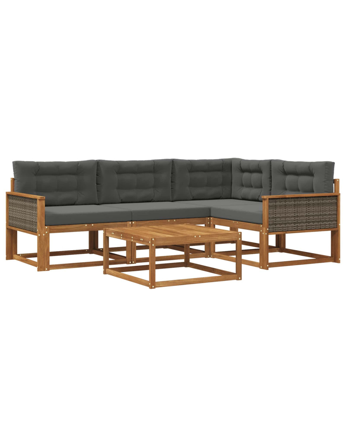 Questo set di divani modulari da esterno ti offre un angolo accogliente e confortevole per il tuo living all'aperto. Con il design moderno, con linee pulite e una funzionalità versatile, trasforma giardini, patii o aree attorno alla piscina in un rifugio elegante per il relax e le riunioni. L'aspetto in legno naturale si integra bene con la natura, mentre la sua ergonomia lo rende sia pra