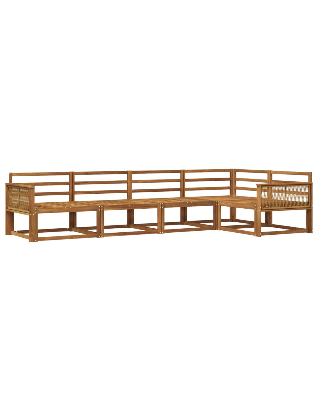 Questo set di divani modulari all'aperto combina stile e funzionalità, rendendo il tuo giardino, patio o qualsiasi spazio esterno il posto perfetto per rilassarsi e divertirsi. Dalle linee pulite e senza fronzoli, si presta bene a mattinate soleggiate o serate accoglienti. Il colore marrone naturale si inserisce facilmente ovunque, regalando un look sofisticato che invita gli ospiti a godere il comfort con stile. Legno di acacia premium Questo divano è realizzato con legno massello di alta qualità, garantendo robustezza e durata nel tempo, permettendo al tuo spazio esterno di rimanere stiloso e accogliente. È progettato per stabilità, rendendolo perfetto anche in diverse condizioni atmosferiche. Design a doghe Senti il comfort grazie allo schienale a doghe, che unisce eleganza e praticità. Le doghe ben distanziate assicurano supporto e ventilazione, mantenendo il relax fresco anche nelle giornate calde. Braccioli funzionali Con pratici braccioli in legno massello, questo set offre comfort extra e una presa sicura, perfetta per momenti di svago. I braccioli sono progettati per essere ergonomici, supportando il relax, sia mentre leggi che quando chiacchieri. Flessibilità modulare Grazie alla sua struttura modulare, il set di divani può essere facilmente riadattato per vari spazi e configurazioni. Riorganizzalo per accogliere eventi, assicurando che il tuo esterno sia pronto per ogni tipo di incontro, da chiacchierate intime a grandi feste. Facile manutenzione Mantieni l'aspetto del set pulendolo con un panno umido. Proteggilo dalla luce solare intensa e coprilo quando non è in uso per farlo durare nel tempo, così rimarrà sempre il protagonista del tuo spazio esterno.
