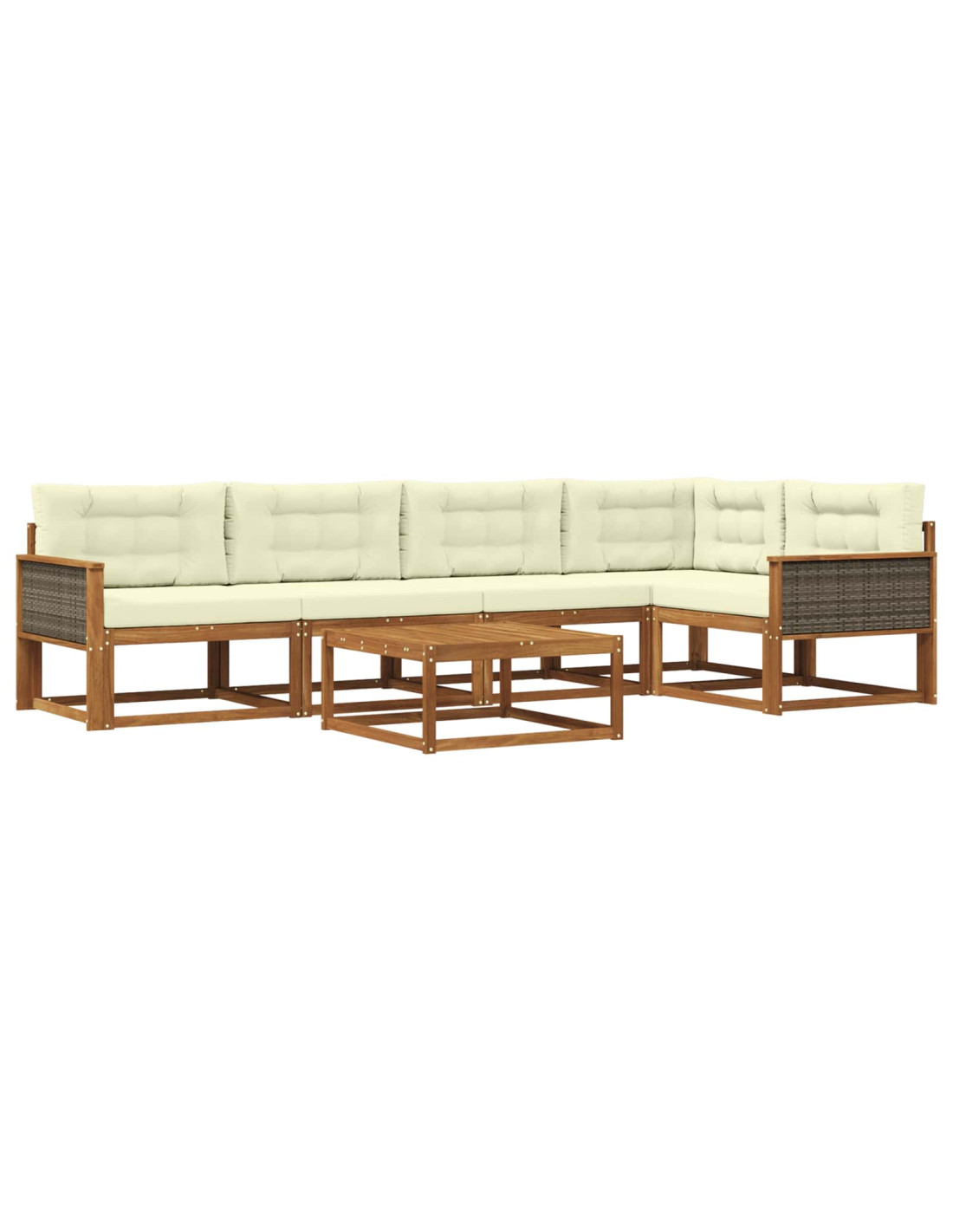 Questo set di divani modulari per esterni, con un design moderno e semplice, rende ogni spazio all'aperto più accogliente. È realizzato in legno massello di acacia, che gli conferisce un aspetto elegante e chic, perfetto per feste nel giardino o per un momento di relax a bordo piscina. Il suo colore marrone si fonde bene con la natura, rendendolo una bella aggiunta a patii, giardini e ar