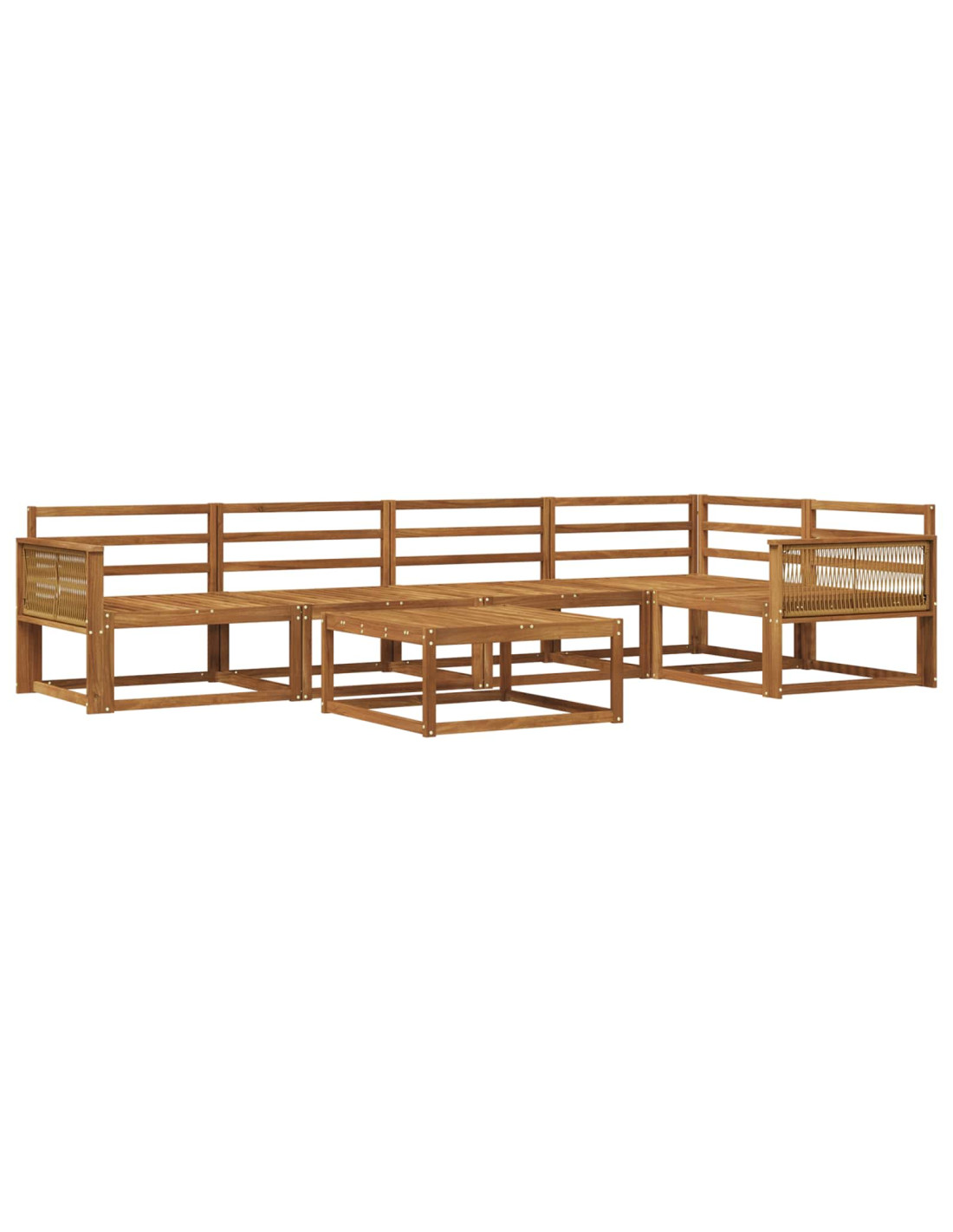 Questo set di divani modulari per esterni, con un design moderno e semplice, rende ogni spazio all'aperto più accogliente. È realizzato in legno massello di acacia, che gli conferisce un aspetto elegante e chic, perfetto per feste nel giardino o per un momento di relax a bordo piscina. Il suo colore marrone si fonde bene con la natura, rendendolo una bella aggiunta a patii, giardini e ar