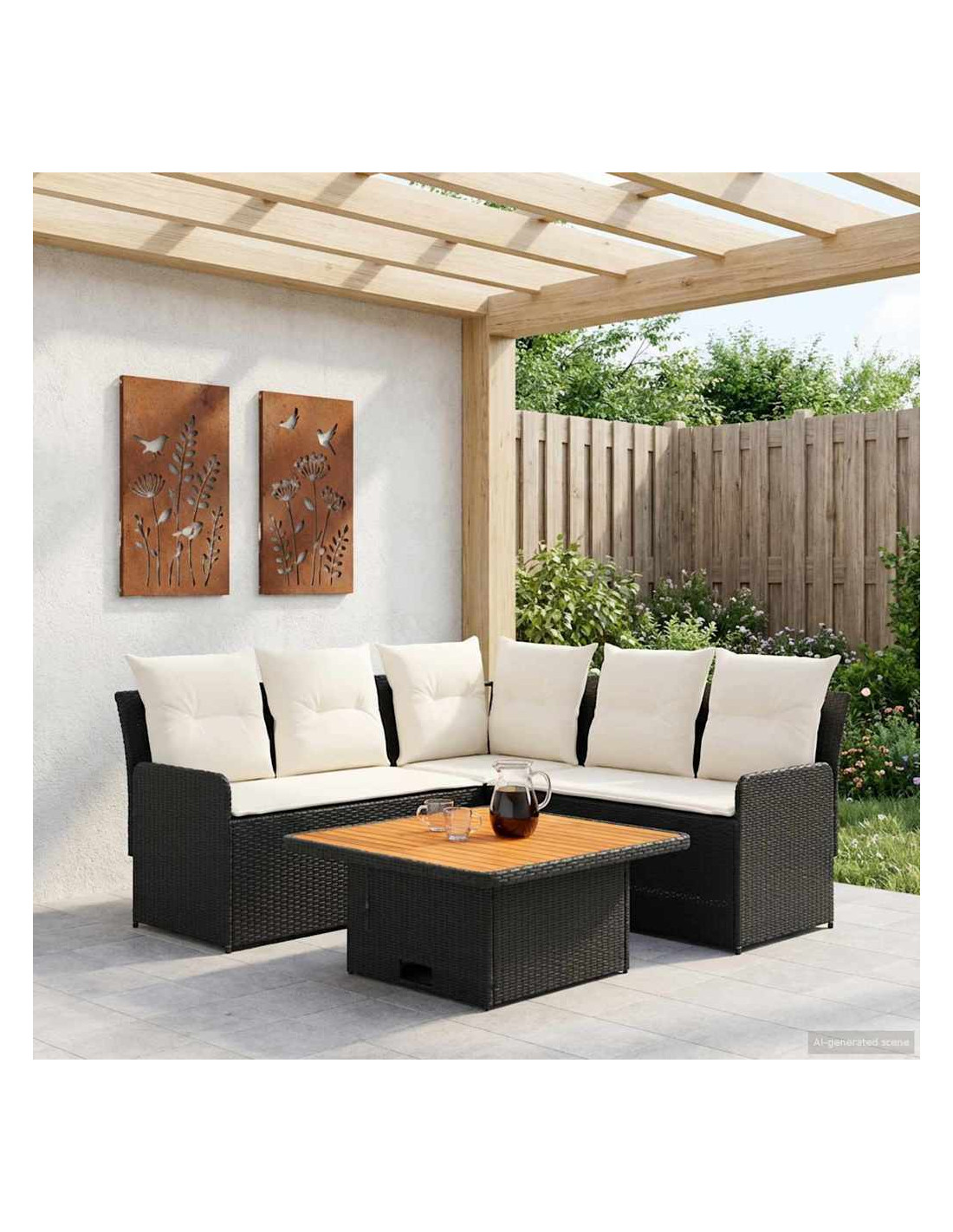 Questo set di mobili moderni è progettato per adattarsi a spazi interni ed esterni. Con un focus sulla semplicità e sulla funzionalità, presenta linee pulite e pochi fronzoli, aumentando il suo fascino contemporaneo. Costruito in rattan PE e legno massello di acacia, porta un tocco moderno ovunque, perfetto per godere di momenti di svago con amici e familiari. Che sia su un patio o in soggiorno, si adatta a diversi stili d'interni, unendo resistenza e design. La calda finitura marrone e i morbidi cuscini creano un ambiente accogliente di relax, rendendo i momenti confortevoli ancora più piacevoli. Materiali: Fatto in rattan PE, questo set non solo è bello da vedere grazie al design intrecciato, ma è anche pratico grazie alla resistenza agli agenti atmosferici. Il rattan PE è noto per la sua durata contro raggi UV e umidità, garantendo un utilizzo prolungato. Inoltre, presenta una robusta struttura in acciaio verniciato, per supporto affidabile e peso leggero, perfetto per posizionamenti flessibili. Componenti Inclusi: Dotato di comodi cuscini con coperture removibili, il set di mobili è facile da mantenere. La schiuma e la fibra di poliestere offrono comfort per lunghe ore di relax. I cuscini removibili e chiusi con zip rendono la pulizia un gioco da ragazzi, mentre l'aspetto simile a cuscini arricchisce l'atmosfera di qualsiasi ambiente. Caratteristiche / Funzioni / Design: Progettato con piedi regolabili, il set si adatta facilmente su terreni irregolari, assicurando stabilità e sicurezza ovunque lo metti. Questa comodità aggiunge versatilità, permettendo di utilizzarlo in molte situazioni, sia in interno che in esterno. Usi Raccomandati: Perfetto per patios, terrazze, giardini o spazi interni, questo set si adatta strategicità a vari contesti. Il suo design moderno e le tonalità neutre lo rendono ideale per chi ama festeggiare all'aperto o semplicemente rilassarsi dentro casa. Manutenzione: Si consiglia di pulire solo con metodi asciutti per evitare sostanze chimiche aggressive che possono danneggiare la superficie. Coprendo il set con una protezione impermeabile quando non viene usato, garantirai la sua durata e manterrai la sua condizione agevolmente, specialmente in caso di mal tempo.