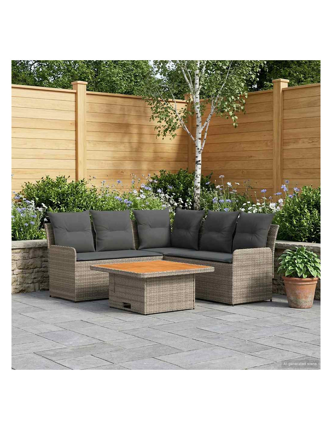 Questo set di mobili moderni è progettato per adattarsi a spazi interni ed esterni. Con un focus sulla semplicità e sulla funzionalità, presenta linee pulite e pochi fronzoli, aumentando il suo fascino contemporaneo. Costruito in rattan PE e legno massello di acacia, porta un tocco moderno ovunque, perfetto per godere di momenti di svago con amici e familiari. Che sia su un patio o in soggiorno, si adatta a diversi stili d'interni, unendo resistenza e design. La calda finitura marrone e i morbidi cuscini creano un ambiente accogliente di relax, rendendo i momenti confortevoli ancora più piacevoli. Materiali: Fatto in rattan PE, questo set non solo è bello da vedere grazie al design intrecciato, ma è anche pratico grazie alla resistenza agli agenti atmosferici. Il rattan PE è noto per la sua durata contro raggi UV e umidità, garantendo un utilizzo prolungato. Inoltre, presenta una robusta struttura in acciaio verniciato, per supporto affidabile e peso leggero, perfetto per posizionamenti flessibili. Componenti Inclusi: Dotato di comodi cuscini con coperture removibili, il set di mobili è facile da mantenere. La schiuma e la fibra di poliestere offrono comfort per lunghe ore di relax. I cuscini removibili e chiusi con zip rendono la pulizia un gioco da ragazzi, mentre l'aspetto simile a cuscini arricchisce l'atmosfera di qualsiasi ambiente. Caratteristiche / Funzioni / Design: Progettato con piedi regolabili, il set si adatta facilmente su terreni irregolari, assicurando stabilità e sicurezza ovunque lo metti. Questa comodità aggiunge versatilità, permettendo di utilizzarlo in molte situazioni, sia in interno che in esterno. Usi Raccomandati: Perfetto per patios, terrazze, giardini o spazi interni, questo set si adatta strategicità a vari contesti. Il suo design moderno e le tonalità neutre lo rendono ideale per chi ama festeggiare all'aperto o semplicemente rilassarsi dentro casa. Manutenzione: Si consiglia di pulire solo con metodi asciutti per evitare sostanze chimiche aggressive che possono danneggiare la superficie. Coprendo il set con una protezione impermeabile quando non viene usato, garantirai la sua durata e manterrai la sua condizione agevolmente, specialmente in caso di mal tempo.