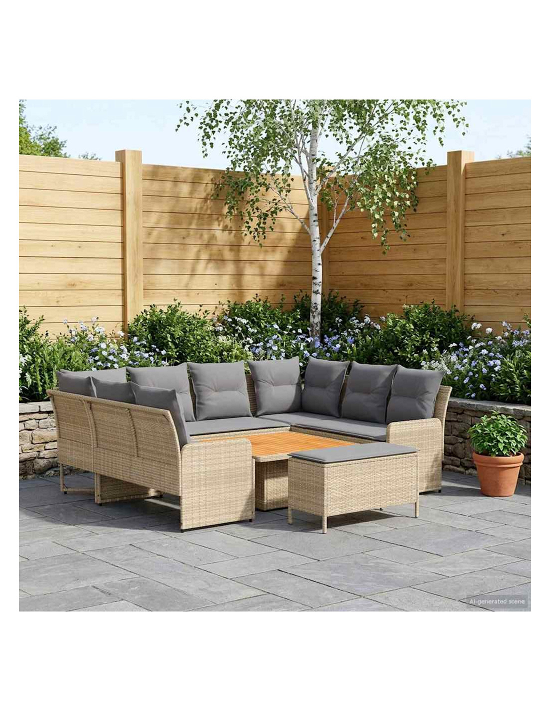 Questo set di mobili moderni è progettato per adattarsi a spazi interni ed esterni. Con un focus sulla semplicità e sulla funzionalità, presenta linee pulite e pochi fronzoli, aumentando il suo fascino contemporaneo. Costruito in rattan PE e legno massello di acacia, porta un tocco moderno ovunque, perfetto per godere di momenti di svago con amici e familiari. Che sia su un patio o in soggiorno, si adatta a diversi stili d'interni, unendo resistenza e design. La calda finitura marrone e i morbidi cuscini creano un ambiente accogliente di relax, rendendo i momenti confortevoli ancora più piacevoli. Materiali: Fatto in rattan PE, questo set non solo è bello da vedere grazie al design intrecciato, ma è anche pratico grazie alla resistenza agli agenti atmosferici. Il rattan PE è noto per la sua durata contro raggi UV e umidità, garantendo un utilizzo prolungato. Inoltre, presenta una robusta struttura in acciaio verniciato, per supporto affidabile e peso leggero, perfetto per posizionamenti flessibili. Componenti Inclusi: Dotato di comodi cuscini con coperture removibili, il set di mobili è facile da mantenere. La schiuma e la fibra di poliestere offrono comfort per lunghe ore di relax. I cuscini removibili e chiusi con zip rendono la pulizia un gioco da ragazzi, mentre l'aspetto simile a cuscini arricchisce l'atmosfera di qualsiasi ambiente. Caratteristiche / Funzioni / Design: Progettato con piedi regolabili, il set si adatta facilmente su terreni irregolari, assicurando stabilità e sicurezza ovunque lo metti. Questa comodità aggiunge versatilità, permettendo di utilizzarlo in molte situazioni, sia in interno che in esterno. Usi Raccomandati: Perfetto per patios, terrazze, giardini o spazi interni, questo set si adatta strategicità a vari contesti. Il suo design moderno e le tonalità neutre lo rendono ideale per chi ama festeggiare all'aperto o semplicemente rilassarsi dentro casa. Manutenzione: Si consiglia di pulire solo con metodi asciutti per evitare sostanze chimiche aggressive che possono danneggiare la superficie. Coprendo il set con una protezione impermeabile quando non viene usato, garantirai la sua durata e manterrai la sua condizione agevolmente, specialmente in caso di mal tempo.