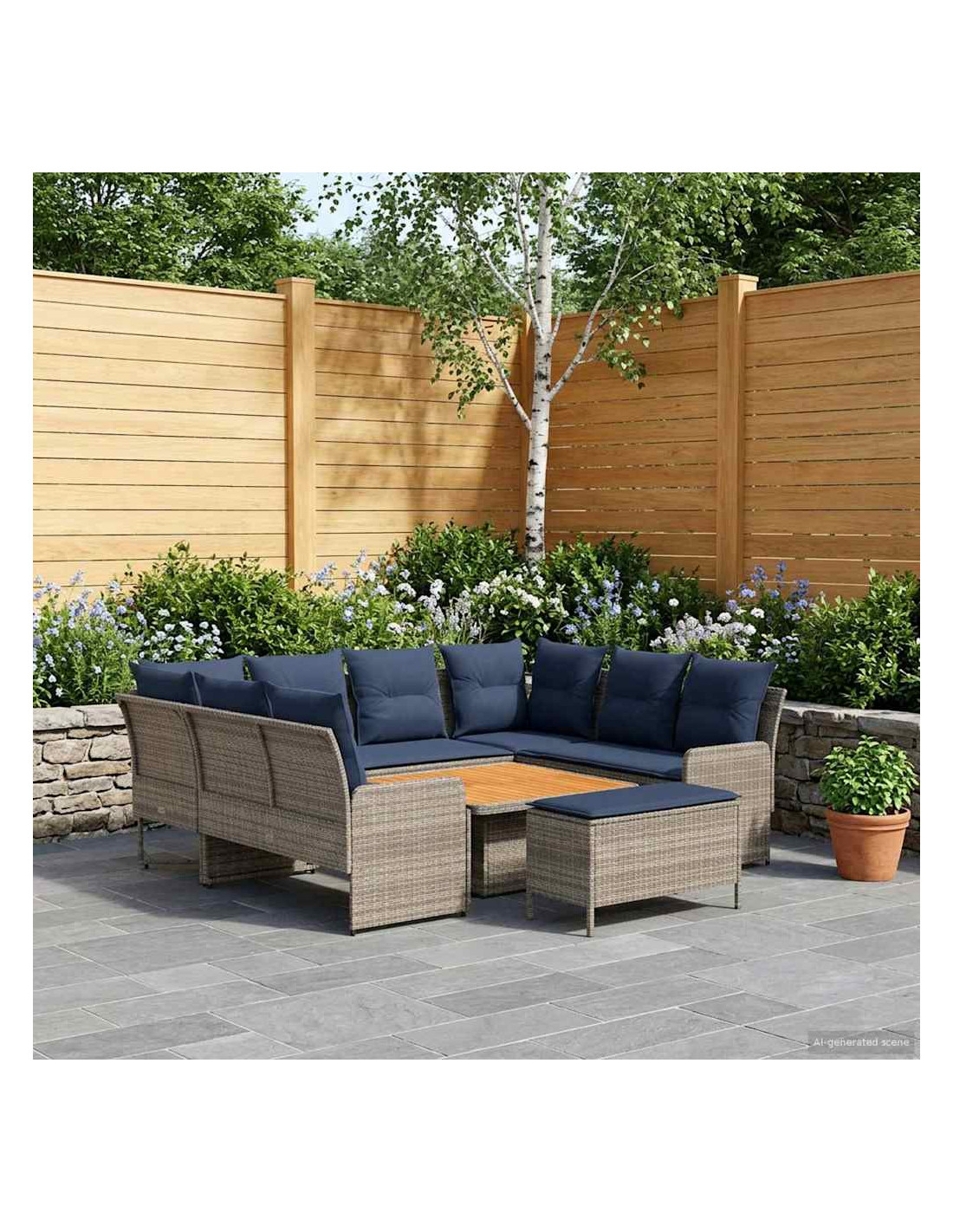 Questo set di mobili moderni è progettato per adattarsi a spazi interni ed esterni. Con un focus sulla semplicità e sulla funzionalità, presenta linee pulite e pochi fronzoli, aumentando il suo fascino contemporaneo. Costruito in rattan PE e legno massello di acacia, porta un tocco moderno ovunque, perfetto per godere di momenti di svago con amici e familiari. Che sia su un patio o in soggiorno, si adatta a diversi stili d'interni, unendo resistenza e design. La calda finitura marrone e i morbidi cuscini creano un ambiente accogliente di relax, rendendo i momenti confortevoli ancora più piacevoli. Materiali: Fatto in rattan PE, questo set non solo è bello da vedere grazie al design intrecciato, ma è anche pratico grazie alla resistenza agli agenti atmosferici. Il rattan PE è noto per la sua durata contro raggi UV e umidità, garantendo un utilizzo prolungato. Inoltre, presenta una robusta struttura in acciaio verniciato, per supporto affidabile e peso leggero, perfetto per posizionamenti flessibili. Componenti Inclusi: Dotato di comodi cuscini con coperture removibili, il set di mobili è facile da mantenere. La schiuma e la fibra di poliestere offrono comfort per lunghe ore di relax. I cuscini removibili e chiusi con zip rendono la pulizia un gioco da ragazzi, mentre l'aspetto simile a cuscini arricchisce l'atmosfera di qualsiasi ambiente. Caratteristiche / Funzioni / Design: Progettato con piedi regolabili, il set si adatta facilmente su terreni irregolari, assicurando stabilità e sicurezza ovunque lo metti. Questa comodità aggiunge versatilità, permettendo di utilizzarlo in molte situazioni, sia in interno che in esterno. Usi Raccomandati: Perfetto per patios, terrazze, giardini o spazi interni, questo set si adatta strategicità a vari contesti. Il suo design moderno e le tonalità neutre lo rendono ideale per chi ama festeggiare all'aperto o semplicemente rilassarsi dentro casa. Manutenzione: Si consiglia di pulire solo con metodi asciutti per evitare sostanze chimiche aggressive che possono danneggiare la superficie. Coprendo il set con una protezione impermeabile quando non viene usato, garantirai la sua durata e manterrai la sua condizione agevolmente, specialmente in caso di mal tempo.