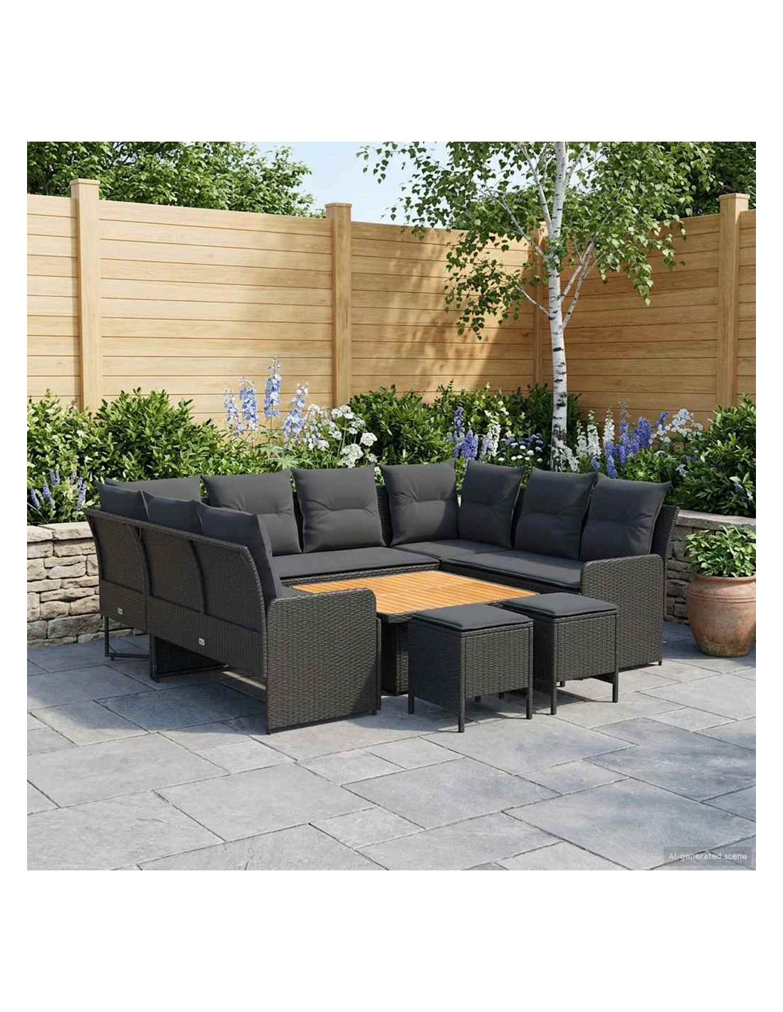 Questo set di mobili moderni è progettato per adattarsi a spazi interni ed esterni. Con un focus sulla semplicità e sulla funzionalità, presenta linee pulite e pochi fronzoli, aumentando il suo fascino contemporaneo. Costruito in rattan PE e legno massello di acacia, porta un tocco moderno ovunque, perfetto per godere di momenti di svago con amici e familiari. Che sia su un patio o in soggiorno, si adatta a diversi stili d'interni, unendo resistenza e design. La calda finitura marrone e i morbidi cuscini creano un ambiente accogliente di relax, rendendo i momenti confortevoli ancora più piacevoli. Materiali: Fatto in rattan PE, questo set non solo è bello da vedere grazie al design intrecciato, ma è anche pratico grazie alla resistenza agli agenti atmosferici. Il rattan PE è noto per la sua durata contro raggi UV e umidità, garantendo un utilizzo prolungato. Inoltre, presenta una robusta struttura in acciaio verniciato, per supporto affidabile e peso leggero, perfetto per posizionamenti flessibili. Componenti Inclusi: Dotato di comodi cuscini con coperture removibili, il set di mobili è facile da mantenere. La schiuma e la fibra di poliestere offrono comfort per lunghe ore di relax. I cuscini removibili e chiusi con zip rendono la pulizia un gioco da ragazzi, mentre l'aspetto simile a cuscini arricchisce l'atmosfera di qualsiasi ambiente. Caratteristiche / Funzioni / Design: Progettato con piedi regolabili, il set si adatta facilmente su terreni irregolari, assicurando stabilità e sicurezza ovunque lo metti. Questa comodità aggiunge versatilità, permettendo di utilizzarlo in molte situazioni, sia in interno che in esterno. Usi Raccomandati: Perfetto per patios, terrazze, giardini o spazi interni, questo set si adatta strategicità a vari contesti. Il suo design moderno e le tonalità neutre lo rendono ideale per chi ama festeggiare all'aperto o semplicemente rilassarsi dentro casa. Manutenzione: Si consiglia di pulire solo con metodi asciutti per evitare sostanze chimiche aggressive che possono danneggiare la superficie. Coprendo il set con una protezione impermeabile quando non viene usato, garantirai la sua durata e manterrai la sua condizione agevolmente, specialmente in caso di mal tempo.