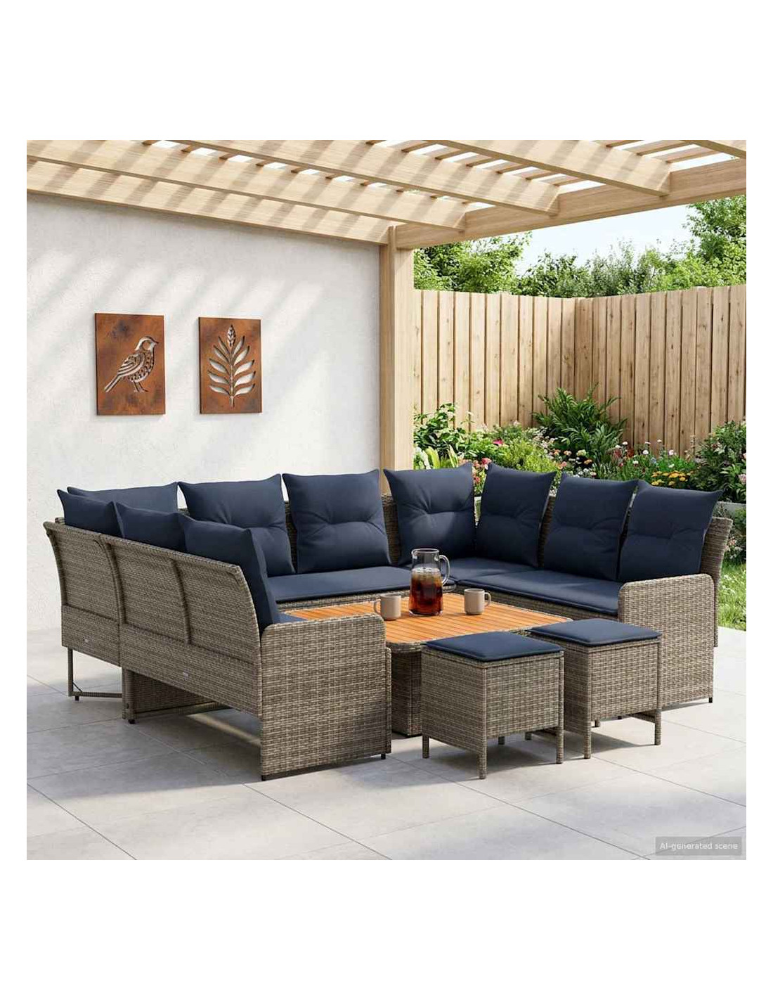 Questo set di mobili moderni è progettato per adattarsi a spazi interni ed esterni. Con un focus sulla semplicità e sulla funzionalità, presenta linee pulite e pochi fronzoli, aumentando il suo fascino contemporaneo. Costruito in rattan PE e legno massello di acacia, porta un tocco moderno ovunque, perfetto per godere di momenti di svago con amici e familiari. Che sia su un patio o in soggiorno, si adatta a diversi stili d'interni, unendo resistenza e design. La calda finitura marrone e i morbidi cuscini creano un ambiente accogliente di relax, rendendo i momenti confortevoli ancora più piacevoli. Materiali: Fatto in rattan PE, questo set non solo è bello da vedere grazie al design intrecciato, ma è anche pratico grazie alla resistenza agli agenti atmosferici. Il rattan PE è noto per la sua durata contro raggi UV e umidità, garantendo un utilizzo prolungato. Inoltre, presenta una robusta struttura in acciaio verniciato, per supporto affidabile e peso leggero, perfetto per posizionamenti flessibili. Componenti Inclusi: Dotato di comodi cuscini con coperture removibili, il set di mobili è facile da mantenere. La schiuma e la fibra di poliestere offrono comfort per lunghe ore di relax. I cuscini removibili e chiusi con zip rendono la pulizia un gioco da ragazzi, mentre l'aspetto simile a cuscini arricchisce l'atmosfera di qualsiasi ambiente. Caratteristiche / Funzioni / Design: Progettato con piedi regolabili, il set si adatta facilmente su terreni irregolari, assicurando stabilità e sicurezza ovunque lo metti. Questa comodità aggiunge versatilità, permettendo di utilizzarlo in molte situazioni, sia in interno che in esterno. Usi Raccomandati: Perfetto per patios, terrazze, giardini o spazi interni, questo set si adatta strategicità a vari contesti. Il suo design moderno e le tonalità neutre lo rendono ideale per chi ama festeggiare all'aperto o semplicemente rilassarsi dentro casa. Manutenzione: Si consiglia di pulire solo con metodi asciutti per evitare sostanze chimiche aggressive che possono danneggiare la superficie. Coprendo il set con una protezione impermeabile quando non viene usato, garantirai la sua durata e manterrai la sua condizione agevolmente, specialmente in caso di mal tempo.