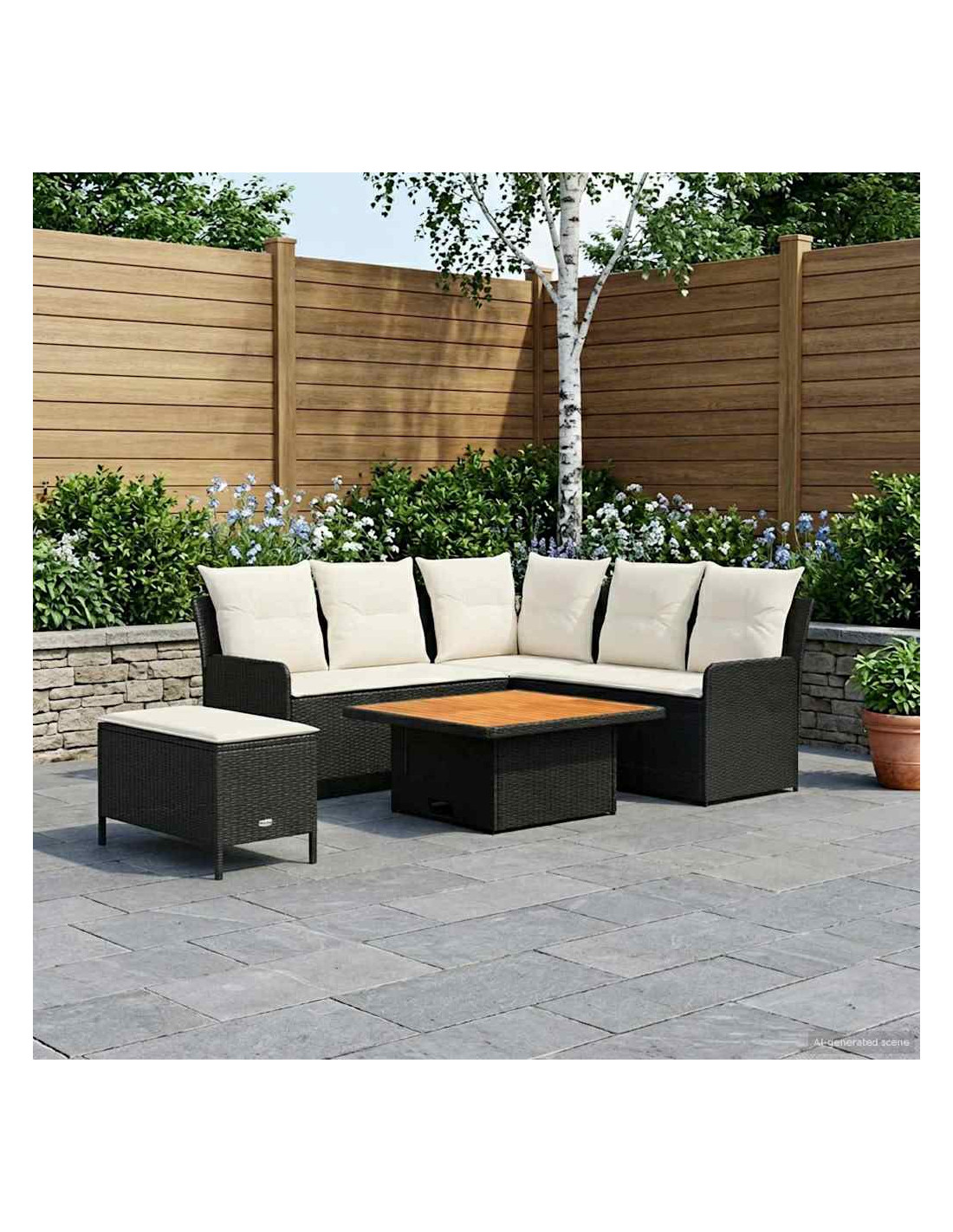 Questo set di mobili moderni è progettato per adattarsi a spazi interni ed esterni. Con un focus sulla semplicità e sulla funzionalità, presenta linee pulite e pochi fronzoli, aumentando il suo fascino contemporaneo. Costruito in rattan PE e legno massello di acacia, porta un tocco moderno ovunque, perfetto per godere di momenti di svago con amici e familiari. Che sia su un patio o in soggiorno, si adatta a diversi stili d'interni, unendo resistenza e design. La calda finitura marrone e i morbidi cuscini creano un ambiente accogliente di relax, rendendo i momenti confortevoli ancora più piacevoli. Materiali: Fatto in rattan PE, questo set non solo è bello da vedere grazie al design intrecciato, ma è anche pratico grazie alla resistenza agli agenti atmosferici. Il rattan PE è noto per la sua durata contro raggi UV e umidità, garantendo un utilizzo prolungato. Inoltre, presenta una robusta struttura in acciaio verniciato, per supporto affidabile e peso leggero, perfetto per posizionamenti flessibili. Componenti Inclusi: Dotato di comodi cuscini con coperture removibili, il set di mobili è facile da mantenere. La schiuma e la fibra di poliestere offrono comfort per lunghe ore di relax. I cuscini removibili e chiusi con zip rendono la pulizia un gioco da ragazzi, mentre l'aspetto simile a cuscini arricchisce l'atmosfera di qualsiasi ambiente. Caratteristiche / Funzioni / Design: Progettato con piedi regolabili, il set si adatta facilmente su terreni irregolari, assicurando stabilità e sicurezza ovunque lo metti. Questa comodità aggiunge versatilità, permettendo di utilizzarlo in molte situazioni, sia in interno che in esterno. Usi Raccomandati: Perfetto per patios, terrazze, giardini o spazi interni, questo set si adatta strategicità a vari contesti. Il suo design moderno e le tonalità neutre lo rendono ideale per chi ama festeggiare all'aperto o semplicemente rilassarsi dentro casa. Manutenzione: Si consiglia di pulire solo con metodi asciutti per evitare sostanze chimiche aggressive che possono danneggiare la superficie. Coprendo il set con una protezione impermeabile quando non viene usato, garantirai la sua durata e manterrai la sua condizione agevolmente, specialmente in caso di mal tempo.