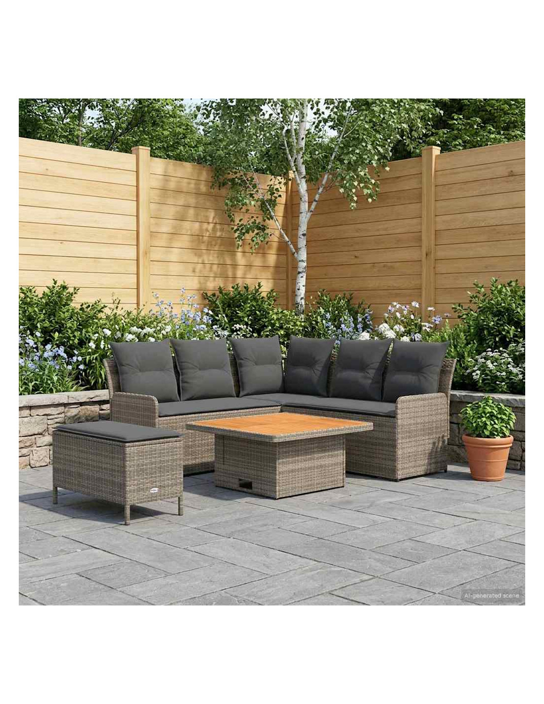 Questo set di mobili moderni è progettato per adattarsi a spazi interni ed esterni. Con un focus sulla semplicità e sulla funzionalità, presenta linee pulite e pochi fronzoli, aumentando il suo fascino contemporaneo. Costruito in rattan PE e legno massello di acacia, porta un tocco moderno ovunque, perfetto per godere di momenti di svago con amici e familiari. Che sia su un patio o in soggiorno, si adatta a diversi stili d'interni, unendo resistenza e design. La calda finitura marrone e i morbidi cuscini creano un ambiente accogliente di relax, rendendo i momenti confortevoli ancora più piacevoli. Materiali: Fatto in rattan PE, questo set non solo è bello da vedere grazie al design intrecciato, ma è anche pratico grazie alla resistenza agli agenti atmosferici. Il rattan PE è noto per la sua durata contro raggi UV e umidità, garantendo un utilizzo prolungato. Inoltre, presenta una robusta struttura in acciaio verniciato, per supporto affidabile e peso leggero, perfetto per posizionamenti flessibili. Componenti Inclusi: Dotato di comodi cuscini con coperture removibili, il set di mobili è facile da mantenere. La schiuma e la fibra di poliestere offrono comfort per lunghe ore di relax. I cuscini removibili e chiusi con zip rendono la pulizia un gioco da ragazzi, mentre l'aspetto simile a cuscini arricchisce l'atmosfera di qualsiasi ambiente. Caratteristiche / Funzioni / Design: Progettato con piedi regolabili, il set si adatta facilmente su terreni irregolari, assicurando stabilità e sicurezza ovunque lo metti. Questa comodità aggiunge versatilità, permettendo di utilizzarlo in molte situazioni, sia in interno che in esterno. Usi Raccomandati: Perfetto per patios, terrazze, giardini o spazi interni, questo set si adatta strategicità a vari contesti. Il suo design moderno e le tonalità neutre lo rendono ideale per chi ama festeggiare all'aperto o semplicemente rilassarsi dentro casa. Manutenzione: Si consiglia di pulire solo con metodi asciutti per evitare sostanze chimiche aggressive che possono danneggiare la superficie. Coprendo il set con una protezione impermeabile quando non viene usato, garantirai la sua durata e manterrai la sua condizione agevolmente, specialmente in caso di mal tempo.