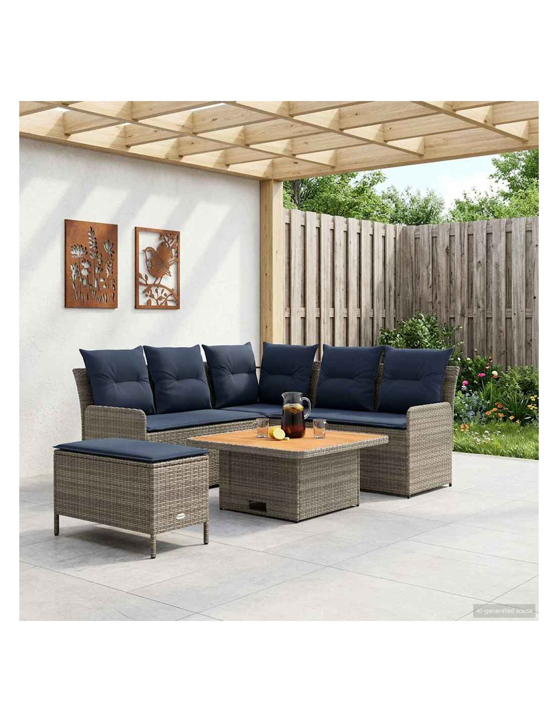 Questo set di mobili moderni è progettato per adattarsi a spazi interni ed esterni. Con un focus sulla semplicità e sulla funzionalità, presenta linee pulite e pochi fronzoli, aumentando il suo fascino contemporaneo. Costruito in rattan PE e legno massello di acacia, porta un tocco moderno ovunque, perfetto per godere di momenti di svago con amici e familiari. Che sia su un patio o in soggiorno, si adatta a diversi stili d'interni, unendo resistenza e design. La calda finitura marrone e i morbidi cuscini creano un ambiente accogliente di relax, rendendo i momenti confortevoli ancora più piacevoli. Materiali: Fatto in rattan PE, questo set non solo è bello da vedere grazie al design intrecciato, ma è anche pratico grazie alla resistenza agli agenti atmosferici. Il rattan PE è noto per la sua durata contro raggi UV e umidità, garantendo un utilizzo prolungato. Inoltre, presenta una robusta struttura in acciaio verniciato, per supporto affidabile e peso leggero, perfetto per posizionamenti flessibili. Componenti Inclusi: Dotato di comodi cuscini con coperture removibili, il set di mobili è facile da mantenere. La schiuma e la fibra di poliestere offrono comfort per lunghe ore di relax. I cuscini removibili e chiusi con zip rendono la pulizia un gioco da ragazzi, mentre l'aspetto simile a cuscini arricchisce l'atmosfera di qualsiasi ambiente. Caratteristiche / Funzioni / Design: Progettato con piedi regolabili, il set si adatta facilmente su terreni irregolari, assicurando stabilità e sicurezza ovunque lo metti. Questa comodità aggiunge versatilità, permettendo di utilizzarlo in molte situazioni, sia in interno che in esterno. Usi Raccomandati: Perfetto per patios, terrazze, giardini o spazi interni, questo set si adatta strategicità a vari contesti. Il suo design moderno e le tonalità neutre lo rendono ideale per chi ama festeggiare all'aperto o semplicemente rilassarsi dentro casa. Manutenzione: Si consiglia di pulire solo con metodi asciutti per evitare sostanze chimiche aggressive che possono danneggiare la superficie. Coprendo il set con una protezione impermeabile quando non viene usato, garantirai la sua durata e manterrai la sua condizione agevolmente, specialmente in caso di mal tempo.