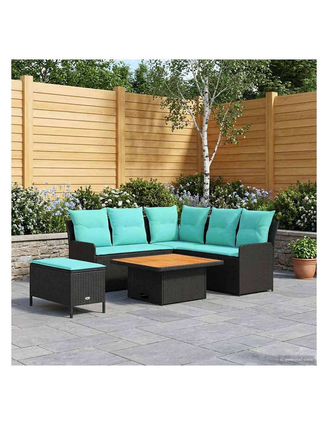 Questo set di mobili moderni è progettato per adattarsi a spazi interni ed esterni. Con un focus sulla semplicità e sulla funzionalità, presenta linee pulite e pochi fronzoli, aumentando il suo fascino contemporaneo. Costruito in rattan PE e legno massello di acacia, porta un tocco moderno ovunque, perfetto per godere di momenti di svago con amici e familiari. Che sia su un patio o in soggiorno, si adatta a diversi stili d'interni, unendo resistenza e design. La calda finitura marrone e i morbidi cuscini creano un ambiente accogliente di relax, rendendo i momenti confortevoli ancora più piacevoli. Materiali: Fatto in rattan PE, questo set non solo è bello da vedere grazie al design intrecciato, ma è anche pratico grazie alla resistenza agli agenti atmosferici. Il rattan PE è noto per la sua durata contro raggi UV e umidità, garantendo un utilizzo prolungato. Inoltre, presenta una robusta struttura in acciaio verniciato, per supporto affidabile e peso leggero, perfetto per posizionamenti flessibili. Componenti Inclusi: Dotato di comodi cuscini con coperture removibili, il set di mobili è facile da mantenere. La schiuma e la fibra di poliestere offrono comfort per lunghe ore di relax. I cuscini removibili e chiusi con zip rendono la pulizia un gioco da ragazzi, mentre l'aspetto simile a cuscini arricchisce l'atmosfera di qualsiasi ambiente. Caratteristiche / Funzioni / Design: Progettato con piedi regolabili, il set si adatta facilmente su terreni irregolari, assicurando stabilità e sicurezza ovunque lo metti. Questa comodità aggiunge versatilità, permettendo di utilizzarlo in molte situazioni, sia in interno che in esterno. Usi Raccomandati: Perfetto per patios, terrazze, giardini o spazi interni, questo set si adatta strategicità a vari contesti. Il suo design moderno e le tonalità neutre lo rendono ideale per chi ama festeggiare all'aperto o semplicemente rilassarsi dentro casa. Manutenzione: Si consiglia di pulire solo con metodi asciutti per evitare sostanze chimiche aggressive che possono danneggiare la superficie. Coprendo il set con una protezione impermeabile quando non viene usato, garantirai la sua durata e manterrai la sua condizione agevolmente, specialmente in caso di mal tempo.