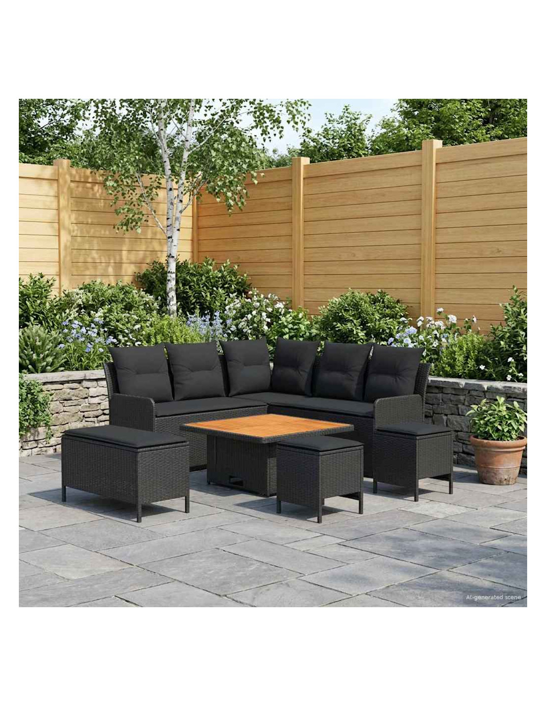 Questo set di mobili moderni è progettato per adattarsi a spazi interni ed esterni. Con un focus sulla semplicità e sulla funzionalità, presenta linee pulite e pochi fronzoli, aumentando il suo fascino contemporaneo. Costruito in rattan PE e legno massello di acacia, porta un tocco moderno ovunque, perfetto per godere di momenti di svago con amici e familiari. Che sia su un patio o in soggiorno, si adatta a diversi stili d'interni, unendo resistenza e design. La calda finitura marrone e i morbidi cuscini creano un ambiente accogliente di relax, rendendo i momenti confortevoli ancora più piacevoli. Materiali: Fatto in rattan PE, questo set non solo è bello da vedere grazie al design intrecciato, ma è anche pratico grazie alla resistenza agli agenti atmosferici. Il rattan PE è noto per la sua durata contro raggi UV e umidità, garantendo un utilizzo prolungato. Inoltre, presenta una robusta struttura in acciaio verniciato, per supporto affidabile e peso leggero, perfetto per posizionamenti flessibili. Componenti Inclusi: Dotato di comodi cuscini con coperture removibili, il set di mobili è facile da mantenere. La schiuma e la fibra di poliestere offrono comfort per lunghe ore di relax. I cuscini removibili e chiusi con zip rendono la pulizia un gioco da ragazzi, mentre l'aspetto simile a cuscini arricchisce l'atmosfera di qualsiasi ambiente. Caratteristiche / Funzioni / Design: Progettato con piedi regolabili, il set si adatta facilmente su terreni irregolari, assicurando stabilità e sicurezza ovunque lo metti. Questa comodità aggiunge versatilità, permettendo di utilizzarlo in molte situazioni, sia in interno che in esterno. Usi Raccomandati: Perfetto per patios, terrazze, giardini o spazi interni, questo set si adatta strategicità a vari contesti. Il suo design moderno e le tonalità neutre lo rendono ideale per chi ama festeggiare all'aperto o semplicemente rilassarsi dentro casa. Manutenzione: Si consiglia di pulire solo con metodi asciutti per evitare sostanze chimiche aggressive che possono danneggiare la superficie. Coprendo il set con una protezione impermeabile quando non viene usato, garantirai la sua durata e manterrai la sua condizione agevolmente, specialmente in caso di mal tempo.