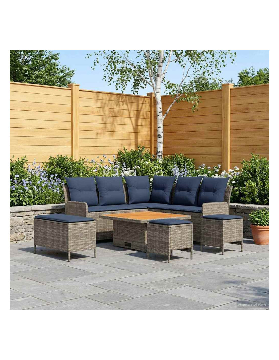 Questo set di mobili moderni è progettato per adattarsi a spazi interni ed esterni. Con un focus sulla semplicità e sulla funzionalità, presenta linee pulite e pochi fronzoli, aumentando il suo fascino contemporaneo. Costruito in rattan PE e legno massello di acacia, porta un tocco moderno ovunque, perfetto per godere di momenti di svago con amici e familiari. Che sia su un patio o in soggiorno, si adatta a diversi stili d'interni, unendo resistenza e design. La calda finitura marrone e i morbidi cuscini creano un ambiente accogliente di relax, rendendo i momenti confortevoli ancora più piacevoli. Materiali: Fatto in rattan PE, questo set non solo è bello da vedere grazie al design intrecciato, ma è anche pratico grazie alla resistenza agli agenti atmosferici. Il rattan PE è noto per la sua durata contro raggi UV e umidità, garantendo un utilizzo prolungato. Inoltre, presenta una robusta struttura in acciaio verniciato, per supporto affidabile e peso leggero, perfetto per posizionamenti flessibili. Componenti Inclusi: Dotato di comodi cuscini con coperture removibili, il set di mobili è facile da mantenere. La schiuma e la fibra di poliestere offrono comfort per lunghe ore di relax. I cuscini removibili e chiusi con zip rendono la pulizia un gioco da ragazzi, mentre l'aspetto simile a cuscini arricchisce l'atmosfera di qualsiasi ambiente. Caratteristiche / Funzioni / Design: Progettato con piedi regolabili, il set si adatta facilmente su terreni irregolari, assicurando stabilità e sicurezza ovunque lo metti. Questa comodità aggiunge versatilità, permettendo di utilizzarlo in molte situazioni, sia in interno che in esterno. Usi Raccomandati: Perfetto per patios, terrazze, giardini o spazi interni, questo set si adatta strategicità a vari contesti. Il suo design moderno e le tonalità neutre lo rendono ideale per chi ama festeggiare all'aperto o semplicemente rilassarsi dentro casa. Manutenzione: Si consiglia di pulire solo con metodi asciutti per evitare sostanze chimiche aggressive che possono danneggiare la superficie. Coprendo il set con una protezione impermeabile quando non viene usato, garantirai la sua durata e manterrai la sua condizione agevolmente, specialmente in caso di mal tempo.