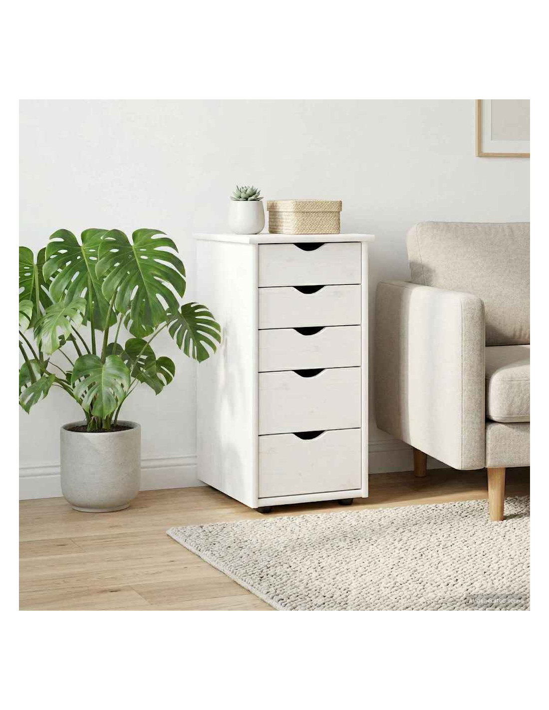 Questo mobiletto minimalista porta un'estetica contemporanea mettendo in primo piano semplicità e funzionalità, perfetto per vari ambienti interni. Realizzato in legno massello di pino, ha una forma rettangolare elegante e una finitura opaca che crea una superficie attraente. È ideale per soggiorni, camere da letto o uffici e si integra facilmente in qualsiasi arredamento, offrendo tanto spazio per riporre le cose grazie a un efficace sistema di cassetti. Il design pratico e la mobilità lo rendono un'aggiunta versatile al tuo ambiente. Costruzione in legno massello di pino: Questo mobile è in pino massello di prima qualità, scelto per la sua bellezza e resistenza. Aggiunge un tocco caldo e naturale ai tuoi interni, rendendolo una scelta elegante e sostenibile per il tuo spazio. Facile mobilità: Con le ruote, il mobile si sposta senza fatica, dandoti la libertà di riorganizzare lo spazio. Spostarlo in un'altra stanza o riorganizzarlo sarà un gioco da ragazzi. Design salvaspazio: La forma rettangolare e le maniglie incassate ottimizzano lo stoccaggio in un mobile compatto. I cassetti si aprono facilmente grazie a scivoli a rotolo, aiutandoti a tenere tutto ordinato. Finitura opaca: La finitura opaca dà al mobile un aspetto elegante, assicurando una superficie non riflettente che mantiene un'aria fresca e moderna. Estende un'atmosfera minimalista che si adatta a qualsiasi interno. Consigli per la manutenzione: Tieni il tuo mobile in ottime condizioni con una pulizia regolare. Basta passare un panno umido e evitare prodotti chimici aggressivi per mantenere la finitura elegante per anni. È un pezzo che richiede poca manutenzione e assicura uno stile duraturo.