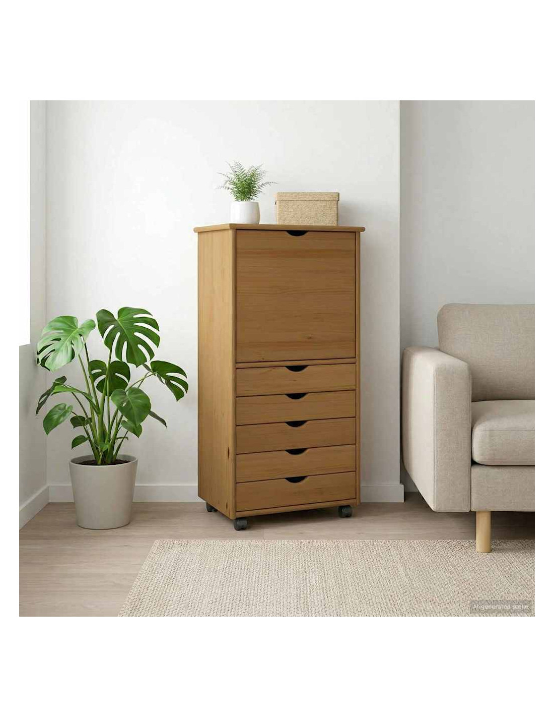 Questo mobiletto minimalista su ruote è pensato per la casa moderna. Con il suo design elegante, è una soluzione di stoccaggio fantastica per ogni stanza. È semplice ma anche molto carino, e si adatta a diversi stili di arredamento. È perfetto per chi ama lo stile e la praticità, tenendo in ordine tutto, dai libri in studio ai vestiti in camera. Costruzione in legno massello di pino Fatto in legno massello di pino, questo mobiletto è robusto e durevole. La finitura opaca gli dà un aspetto naturale e sofisticato, perfetto per ogni casa. Si adatta bene all’uso quotidiano in vari ambienti domestici. Componenti multi-funzionali Dotato di ripiani in legno, maniglie incassate, ante a cerniera e cassetti a scivolo, rende facile tenere in ordine e a portata di mano tutto. Ogni componente migliora l’uso, facilitando la sistemazione degli oggetti. Design versatile Grazie al suo design minimalista, il mobile può essere facilmente spostato in qualsiasi parte della casa. Che tu stia rinnovando o preparando un evento, s'adatta alle tue esigenze sempre senza problemi. Varie opzioni di utilizzo Perfetto per studio, soggiorno, camera da letto o ufficio, questo mobile si integra perfettamente con diversi stili di vita. Il suo ampio spazio aiuta a mantenere tutto in ordine senza ingombrare gli spazi. Facile manutenzione Per mantenerlo in ottimo stato, basta pulirlo con un panno umido senza usare prodotti chimici aggressivi. Con poca cura, il mobile rimarrà sempre elegante e bella parte della tua casa.