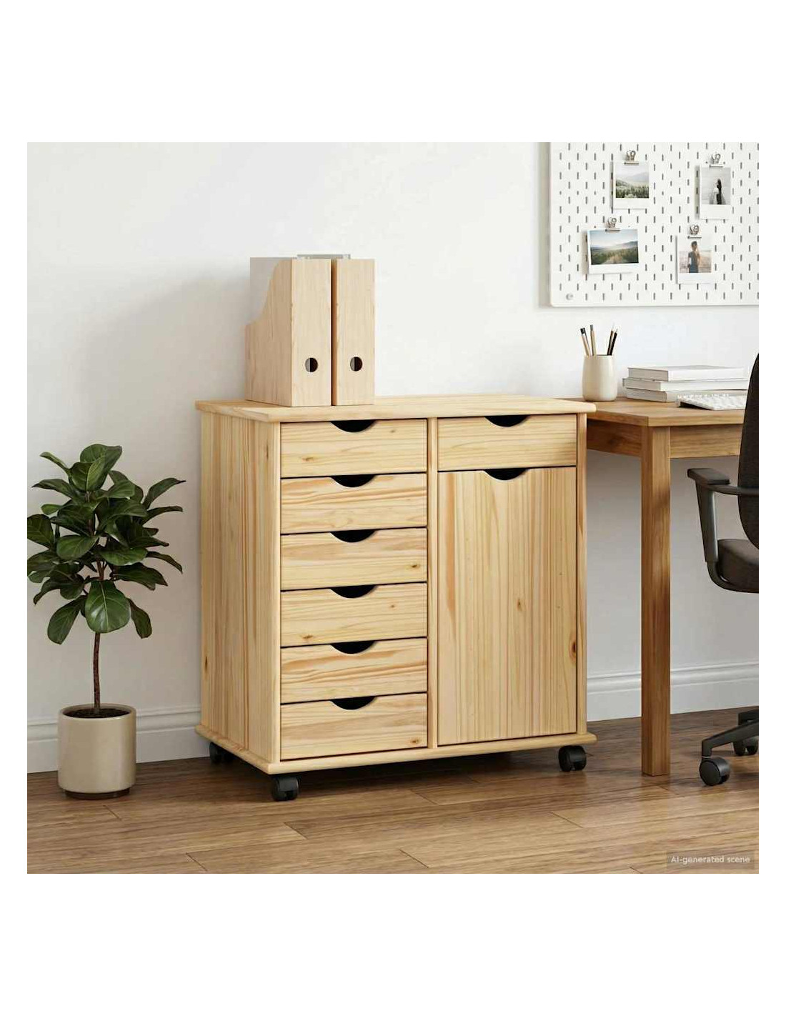 Questo cabinet rotante minimalista offre soluzioni di stoccaggio pratiche con porte e cassetti, rendendolo un'ottima scelta per qualsiasi ambiente, che sia uno studio, un ufficio, una camera da letto o un soggiorno. Il design rettangolare e sobrio si integra perfettamente negli interni moderni, offrendo stoccaggio discreto senza sopraffare l'arredamento già presente. Costruito in legno massello di pino e facile da spostare, si adatta senza problemi a spazi dinamici e a diverse esigenze organizzative. Legno massello di pino: Fatto di legno massello di pino, noto per la sua resistenza e bellezza naturale. Questo materiale durevole garantisce un uso prolungato, mentre la bella grana si abbina perfettamente a diversi stili di decorazione. Comparti pratici: Include ripiani e cassetti estraibili per organizzare gli oggetti in modo semplice. I ripiani sono perfetti per libri, elettronica o decorazioni, mentre i cassetti danno facile accesso a ciò che ti serve. Caratteristiche robuste: Dispone di porte a cerniera e maniglie incassate per un look minimalista. La finitura opaca evita riflessi fastidiosi e mantiene un aspetto elegante. Le porte in legno massello di pino e le maniglie garantiscono robustezza e affidabilità. Design mobile: Grazie alle ruote, questo cabinet è facile da spostare a seconda delle esigenze. Perfetto in ambienti dinamici, sia per riorganizzare durante una creativa sessione di lavoro che per liberare spazio per gli ospiti. Facile da pulire: Richiede poca manutenzione. Basta pulire con un panno umido ed evitare prodotti chimici aggressivi. Il suo design semplice rende la pulizia un gioco da ragazzi.