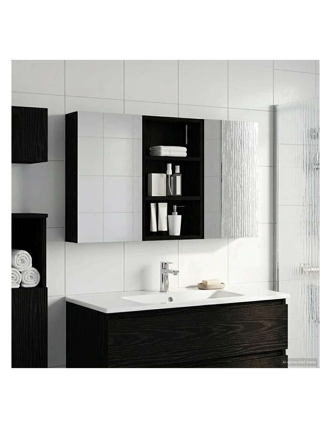 Questo set di armadi moderni per il bagno è il massimo in fatto di stile, combinando un design chic con funzioni pratiche. Creato per chi vive nella modernità, funge sia da spazio di stoccaggio che da decorazione bella, integrandosi perfettamente in ogni bagno. Con tanto spazio grazie alla sua struttura montata a parete, libera il pavimento, rendendo tutto facile da raggiungere. Il set di armadi dà un tocco di freschezza al bagno con lo specchio bifacciale e l'illuminazione LED incorporata, creando un ambiente curato e pronto per l'uso. Costruzione in legno ingegnerizzato Questo set è fatto in legno ingegnerizzato, apprezzato per la sua stabilità e resistenza. Non si deforma né si danneggia facilmente, assicurando un pezzo durevole per l'uso quotidiano. La finitura liscia ne facilita la cura, rendendolo un elemento a bassa manutenzione. Spazio di stoccaggio ampio Progettato per l'utilizzo efficiente, l'armadio da bagno offre tanto spazio con ripiani e porte a cerniera. La disposizione intelligente consente di tenere tutto a portata, garantendo un'organizzazione semplice. Il design salva spazio migliora la funzionalità e riduce il disordine. Specchio bifacciale innovativo Con un specchio bifacciale, questo armadio unisce privacy e visibilità. Il lato esterno è uno specchio standard, mentre quello interno permette una visione discreta, aggiungendo un tocco di classe. Questo elemento arricchisce gli interni moderni grazie alla sua doppia funzione. Illuminazione a striscia LED efficiente Dotato di luci LED USB, illumina gli spazi con una luce bella e a risparmio energetico. Le luci aumentano la visibilità, specialmente di notte, creando un'atmosfera serena e accogliente. Ottimo per chi cerca illuminazione moderna accoppiata a mobili funzionali. Manutenzione e cura semplici Mantenere questo set di armadi è facilissimo. Basta usare un panno morbido e asciutto per le superfici, evitando prodotti chimici aggressivi per preservare il materiale. Queste semplici istruzioni di cura assicurano che l'armadio rimanga un pezzo utile e sempre attuale nel tuo bagno.