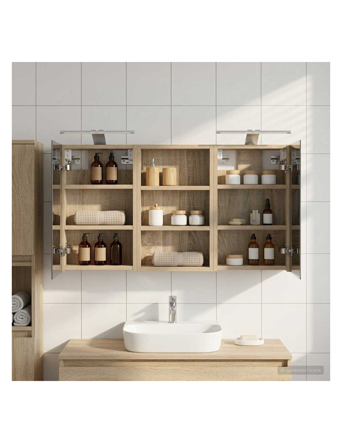 Questo set di armadi moderni per il bagno è il massimo in fatto di stile, combinando un design chic con funzioni pratiche. Creato per chi vive nella modernità, funge sia da spazio di stoccaggio che da decorazione bella, integrandosi perfettamente in ogni bagno. Con tanto spazio grazie alla sua struttura montata a parete, libera il pavimento, rendendo tutto facile da raggiungere. Il set di armadi dà un tocco di freschezza al bagno con lo specchio bifacciale e l'illuminazione LED incorporata, creando un ambiente curato e pronto per l'uso. Costruzione in legno ingegnerizzato Questo set è fatto in legno ingegnerizzato, apprezzato per la sua stabilità e resistenza. Non si deforma né si danneggia facilmente, assicurando un pezzo durevole per l'uso quotidiano. La finitura liscia ne facilita la cura, rendendolo un elemento a bassa manutenzione. Spazio di stoccaggio ampio Progettato per l'utilizzo efficiente, l'armadio da bagno offre tanto spazio con ripiani e porte a cerniera. La disposizione intelligente consente di tenere tutto a portata, garantendo un'organizzazione semplice. Il design salva spazio migliora la funzionalità e riduce il disordine. Specchio bifacciale innovativo Con un specchio bifacciale, questo armadio unisce privacy e visibilità. Il lato esterno è uno specchio standard, mentre quello interno permette una visione discreta, aggiungendo un tocco di classe. Questo elemento arricchisce gli interni moderni grazie alla sua doppia funzione. Illuminazione a striscia LED efficiente Dotato di luci LED USB, illumina gli spazi con una luce bella e a risparmio energetico. Le luci aumentano la visibilità, specialmente di notte, creando un'atmosfera serena e accogliente. Ottimo per chi cerca illuminazione moderna accoppiata a mobili funzionali. Manutenzione e cura semplici Mantenere questo set di armadi è facilissimo. Basta usare un panno morbido e asciutto per le superfici, evitando prodotti chimici aggressivi per preservare il materiale. Queste semplici istruzioni di cura assicurano che l'armadio rimanga un pezzo utile e sempre attuale nel tuo bagno.