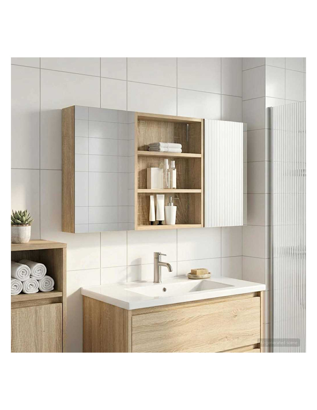 Questo set di armadi moderni per il bagno è il massimo in fatto di stile, combinando un design chic con funzioni pratiche. Creato per chi vive nella modernità, funge sia da spazio di stoccaggio che da decorazione bella, integrandosi perfettamente in ogni bagno. Con tanto spazio grazie alla sua struttura montata a parete, libera il pavimento, rendendo tutto facile da raggiungere. Il set di armadi dà un tocco di freschezza al bagno con lo specchio bifacciale e l'illuminazione LED incorporata, creando un ambiente curato e pronto per l'uso. Costruzione in legno ingegnerizzato Questo set è fatto in legno ingegnerizzato, apprezzato per la sua stabilità e resistenza. Non si deforma né si danneggia facilmente, assicurando un pezzo durevole per l'uso quotidiano. La finitura liscia ne facilita la cura, rendendolo un elemento a bassa manutenzione. Spazio di stoccaggio ampio Progettato per l'utilizzo efficiente, l'armadio da bagno offre tanto spazio con ripiani e porte a cerniera. La disposizione intelligente consente di tenere tutto a portata, garantendo un'organizzazione semplice. Il design salva spazio migliora la funzionalità e riduce il disordine. Specchio bifacciale innovativo Con un specchio bifacciale, questo armadio unisce privacy e visibilità. Il lato esterno è uno specchio standard, mentre quello interno permette una visione discreta, aggiungendo un tocco di classe. Questo elemento arricchisce gli interni moderni grazie alla sua doppia funzione. Illuminazione a striscia LED efficiente Dotato di luci LED USB, illumina gli spazi con una luce bella e a risparmio energetico. Le luci aumentano la visibilità, specialmente di notte, creando un'atmosfera serena e accogliente. Ottimo per chi cerca illuminazione moderna accoppiata a mobili funzionali. Manutenzione e cura semplici Mantenere questo set di armadi è facilissimo. Basta usare un panno morbido e asciutto per le superfici, evitando prodotti chimici aggressivi per preservare il materiale. Queste semplici istruzioni di cura assicurano che l'armadio rimanga un pezzo utile e sempre attuale nel tuo bagno.