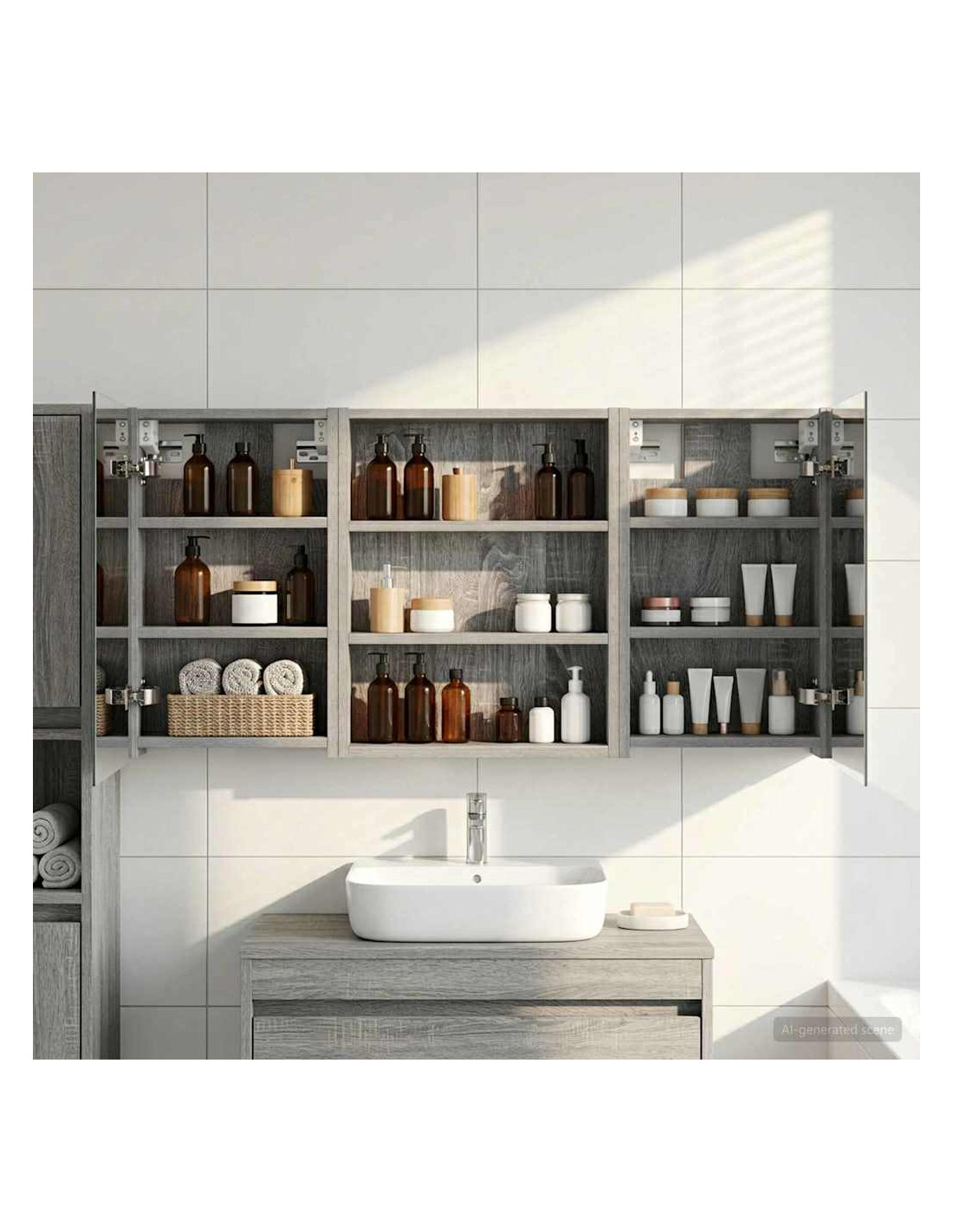 Questo set di armadi moderni per il bagno è il massimo in fatto di stile, combinando un design chic con funzioni pratiche. Creato per chi vive nella modernità, funge sia da spazio di stoccaggio che da decorazione bella, integrandosi perfettamente in ogni bagno. Con tanto spazio grazie alla sua struttura montata a parete, libera il pavimento, rendendo tutto facile da raggiungere. Il set di armadi dà un tocco di freschezza al bagno con lo specchio bifacciale e l'illuminazione LED incorporata, creando un ambiente curato e pronto per l'uso. Costruzione in legno ingegnerizzato Questo set è fatto in legno ingegnerizzato, apprezzato per la sua stabilità e resistenza. Non si deforma né si danneggia facilmente, assicurando un pezzo durevole per l'uso quotidiano. La finitura liscia ne facilita la cura, rendendolo un elemento a bassa manutenzione. Spazio di stoccaggio ampio Progettato per l'utilizzo efficiente, l'armadio da bagno offre tanto spazio con ripiani e porte a cerniera. La disposizione intelligente consente di tenere tutto a portata, garantendo un'organizzazione semplice. Il design salva spazio migliora la funzionalità e riduce il disordine. Specchio bifacciale innovativo Con un specchio bifacciale, questo armadio unisce privacy e visibilità. Il lato esterno è uno specchio standard, mentre quello interno permette una visione discreta, aggiungendo un tocco di classe. Questo elemento arricchisce gli interni moderni grazie alla sua doppia funzione. Illuminazione a striscia LED efficiente Dotato di luci LED USB, illumina gli spazi con una luce bella e a risparmio energetico. Le luci aumentano la visibilità, specialmente di notte, creando un'atmosfera serena e accogliente. Ottimo per chi cerca illuminazione moderna accoppiata a mobili funzionali. Manutenzione e cura semplici Mantenere questo set di armadi è facilissimo. Basta usare un panno morbido e asciutto per le superfici, evitando prodotti chimici aggressivi per preservare il materiale. Queste semplici istruzioni di cura assicurano che l'armadio rimanga un pezzo utile e sempre attuale nel tuo bagno.