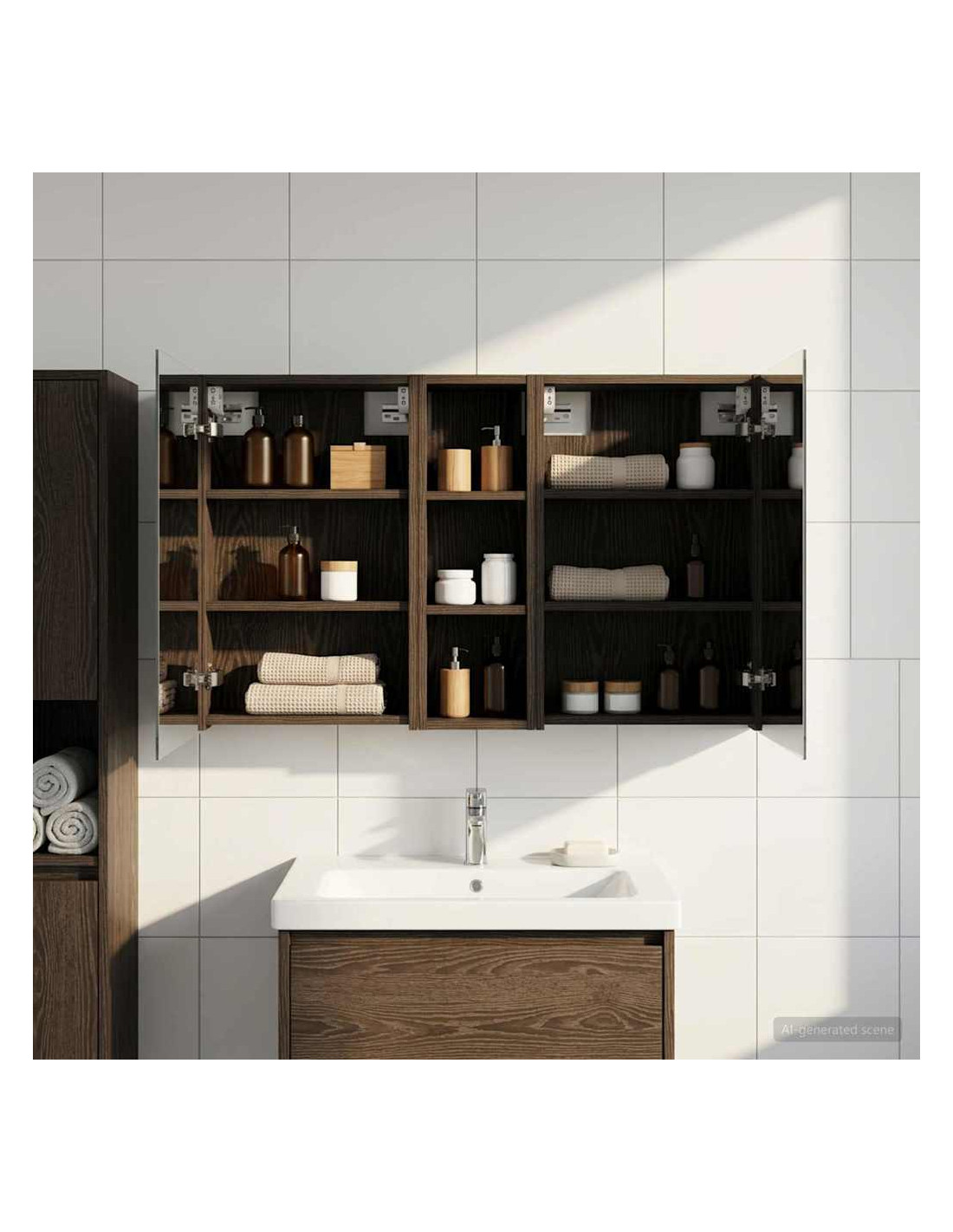 Questo set di armadi moderni per il bagno è il massimo in fatto di stile, combinando un design chic con funzioni pratiche. Creato per chi vive nella modernità, funge sia da spazio di stoccaggio che da decorazione bella, integrandosi perfettamente in ogni bagno. Con tanto spazio grazie alla sua struttura montata a parete, libera il pavimento, rendendo tutto facile da raggiungere. Il set di armadi dà un tocco di freschezza al bagno con lo specchio bifacciale e l'illuminazione LED incorporata, creando un ambiente curato e pronto per l'uso. Costruzione in legno ingegnerizzato Questo set è fatto in legno ingegnerizzato, apprezzato per la sua stabilità e resistenza. Non si deforma né si danneggia facilmente, assicurando un pezzo durevole per l'uso quotidiano. La finitura liscia ne facilita la cura, rendendolo un elemento a bassa manutenzione. Spazio di stoccaggio ampio Progettato per l'utilizzo efficiente, l'armadio da bagno offre tanto spazio con ripiani e porte a cerniera. La disposizione intelligente consente di tenere tutto a portata, garantendo un'organizzazione semplice. Il design salva spazio migliora la funzionalità e riduce il disordine. Specchio bifacciale innovativo Con un specchio bifacciale, questo armadio unisce privacy e visibilità. Il lato esterno è uno specchio standard, mentre quello interno permette una visione discreta, aggiungendo un tocco di classe. Questo elemento arricchisce gli interni moderni grazie alla sua doppia funzione. Illuminazione a striscia LED efficiente Dotato di luci LED USB, illumina gli spazi con una luce bella e a risparmio energetico. Le luci aumentano la visibilità, specialmente di notte, creando un'atmosfera serena e accogliente. Ottimo per chi cerca illuminazione moderna accoppiata a mobili funzionali. Manutenzione e cura semplici Mantenere questo set di armadi è facilissimo. Basta usare un panno morbido e asciutto per le superfici, evitando prodotti chimici aggressivi per preservare il materiale. Queste semplici istruzioni di cura assicurano che l'armadio rimanga un pezzo utile e sempre attuale nel tuo bagno.