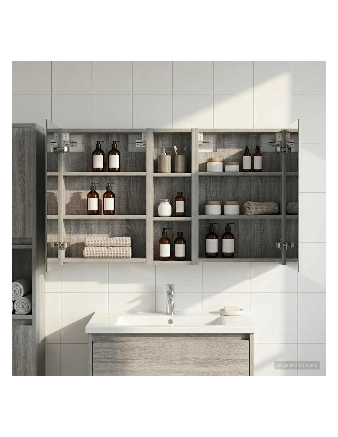 Questo set di armadi moderni per il bagno è il massimo in fatto di stile, combinando un design chic con funzioni pratiche. Creato per chi vive nella modernità, funge sia da spazio di stoccaggio che da decorazione bella, integrandosi perfettamente in ogni bagno. Con tanto spazio grazie alla sua struttura montata a parete, libera il pavimento, rendendo tutto facile da raggiungere. Il set di armadi dà un tocco di freschezza al bagno con lo specchio bifacciale e l'illuminazione LED incorporata, creando un ambiente curato e pronto per l'uso. Costruzione in legno ingegnerizzato Questo set è fatto in legno ingegnerizzato, apprezzato per la sua stabilità e resistenza. Non si deforma né si danneggia facilmente, assicurando un pezzo durevole per l'uso quotidiano. La finitura liscia ne facilita la cura, rendendolo un elemento a bassa manutenzione. Spazio di stoccaggio ampio Progettato per l'utilizzo efficiente, l'armadio da bagno offre tanto spazio con ripiani e porte a cerniera. La disposizione intelligente consente di tenere tutto a portata, garantendo un'organizzazione semplice. Il design salva spazio migliora la funzionalità e riduce il disordine. Specchio bifacciale innovativo Con un specchio bifacciale, questo armadio unisce privacy e visibilità. Il lato esterno è uno specchio standard, mentre quello interno permette una visione discreta, aggiungendo un tocco di classe. Questo elemento arricchisce gli interni moderni grazie alla sua doppia funzione. Illuminazione a striscia LED efficiente Dotato di luci LED USB, illumina gli spazi con una luce bella e a risparmio energetico. Le luci aumentano la visibilità, specialmente di notte, creando un'atmosfera serena e accogliente. Ottimo per chi cerca illuminazione moderna accoppiata a mobili funzionali. Manutenzione e cura semplici Mantenere questo set di armadi è facilissimo. Basta usare un panno morbido e asciutto per le superfici, evitando prodotti chimici aggressivi per preservare il materiale. Queste semplici istruzioni di cura assicurano che l'armadio rimanga un pezzo utile e sempre attuale nel tuo bagno.