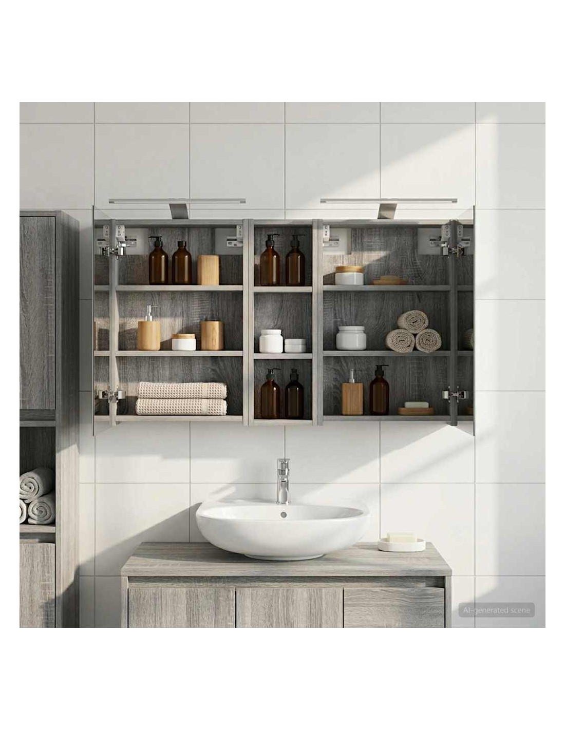 Questo set di armadi moderni per il bagno è il massimo in fatto di stile, combinando un design chic con funzioni pratiche. Creato per chi vive nella modernità, funge sia da spazio di stoccaggio che da decorazione bella, integrandosi perfettamente in ogni bagno. Con tanto spazio grazie alla sua struttura montata a parete, libera il pavimento, rendendo tutto facile da raggiungere. Il set di armadi dà un tocco di freschezza al bagno con lo specchio bifacciale e l'illuminazione LED incorporata, creando un ambiente curato e pronto per l'uso. Costruzione in legno ingegnerizzato Questo set è fatto in legno ingegnerizzato, apprezzato per la sua stabilità e resistenza. Non si deforma né si danneggia facilmente, assicurando un pezzo durevole per l'uso quotidiano. La finitura liscia ne facilita la cura, rendendolo un elemento a bassa manutenzione. Spazio di stoccaggio ampio Progettato per l'utilizzo efficiente, l'armadio da bagno offre tanto spazio con ripiani e porte a cerniera. La disposizione intelligente consente di tenere tutto a portata, garantendo un'organizzazione semplice. Il design salva spazio migliora la funzionalità e riduce il disordine. Specchio bifacciale innovativo Con un specchio bifacciale, questo armadio unisce privacy e visibilità. Il lato esterno è uno specchio standard, mentre quello interno permette una visione discreta, aggiungendo un tocco di classe. Questo elemento arricchisce gli interni moderni grazie alla sua doppia funzione. Illuminazione a striscia LED efficiente Dotato di luci LED USB, illumina gli spazi con una luce bella e a risparmio energetico. Le luci aumentano la visibilità, specialmente di notte, creando un'atmosfera serena e accogliente. Ottimo per chi cerca illuminazione moderna accoppiata a mobili funzionali. Manutenzione e cura semplici Mantenere questo set di armadi è facilissimo. Basta usare un panno morbido e asciutto per le superfici, evitando prodotti chimici aggressivi per preservare il materiale. Queste semplici istruzioni di cura assicurano che l'armadio rimanga un pezzo utile e sempre attuale nel tuo bagno.