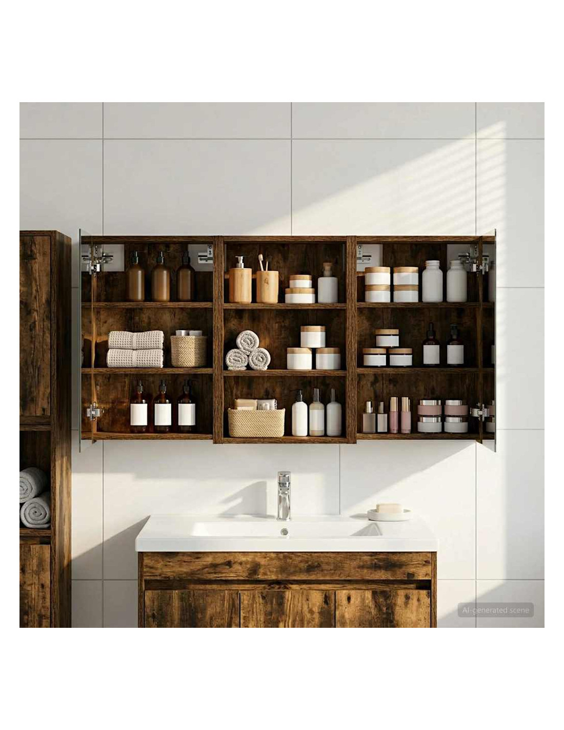 Questo set di armadi moderni per il bagno è il massimo in fatto di stile, combinando un design chic con funzioni pratiche. Creato per chi vive nella modernità, funge sia da spazio di stoccaggio che da decorazione bella, integrandosi perfettamente in ogni bagno. Con tanto spazio grazie alla sua struttura montata a parete, libera il pavimento, rendendo tutto facile da raggiungere. Il set di armadi dà un tocco di freschezza al bagno con lo specchio bifacciale e l'illuminazione LED incorporata, creando un ambiente curato e pronto per l'uso. Costruzione in legno ingegnerizzato Questo set è fatto in legno ingegnerizzato, apprezzato per la sua stabilità e resistenza. Non si deforma né si danneggia facilmente, assicurando un pezzo durevole per l'uso quotidiano. La finitura liscia ne facilita la cura, rendendolo un elemento a bassa manutenzione. Spazio di stoccaggio ampio Progettato per l'utilizzo efficiente, l'armadio da bagno offre tanto spazio con ripiani e porte a cerniera. La disposizione intelligente consente di tenere tutto a portata, garantendo un'organizzazione semplice. Il design salva spazio migliora la funzionalità e riduce il disordine. Specchio bifacciale innovativo Con un specchio bifacciale, questo armadio unisce privacy e visibilità. Il lato esterno è uno specchio standard, mentre quello interno permette una visione discreta, aggiungendo un tocco di classe. Questo elemento arricchisce gli interni moderni grazie alla sua doppia funzione. Illuminazione a striscia LED efficiente Dotato di luci LED USB, illumina gli spazi con una luce bella e a risparmio energetico. Le luci aumentano la visibilità, specialmente di notte, creando un'atmosfera serena e accogliente. Ottimo per chi cerca illuminazione moderna accoppiata a mobili funzionali. Manutenzione e cura semplici Mantenere questo set di armadi è facilissimo. Basta usare un panno morbido e asciutto per le superfici, evitando prodotti chimici aggressivi per preservare il materiale. Queste semplici istruzioni di cura assicurano che l'armadio rimanga un pezzo utile e sempre attuale nel tuo bagno.