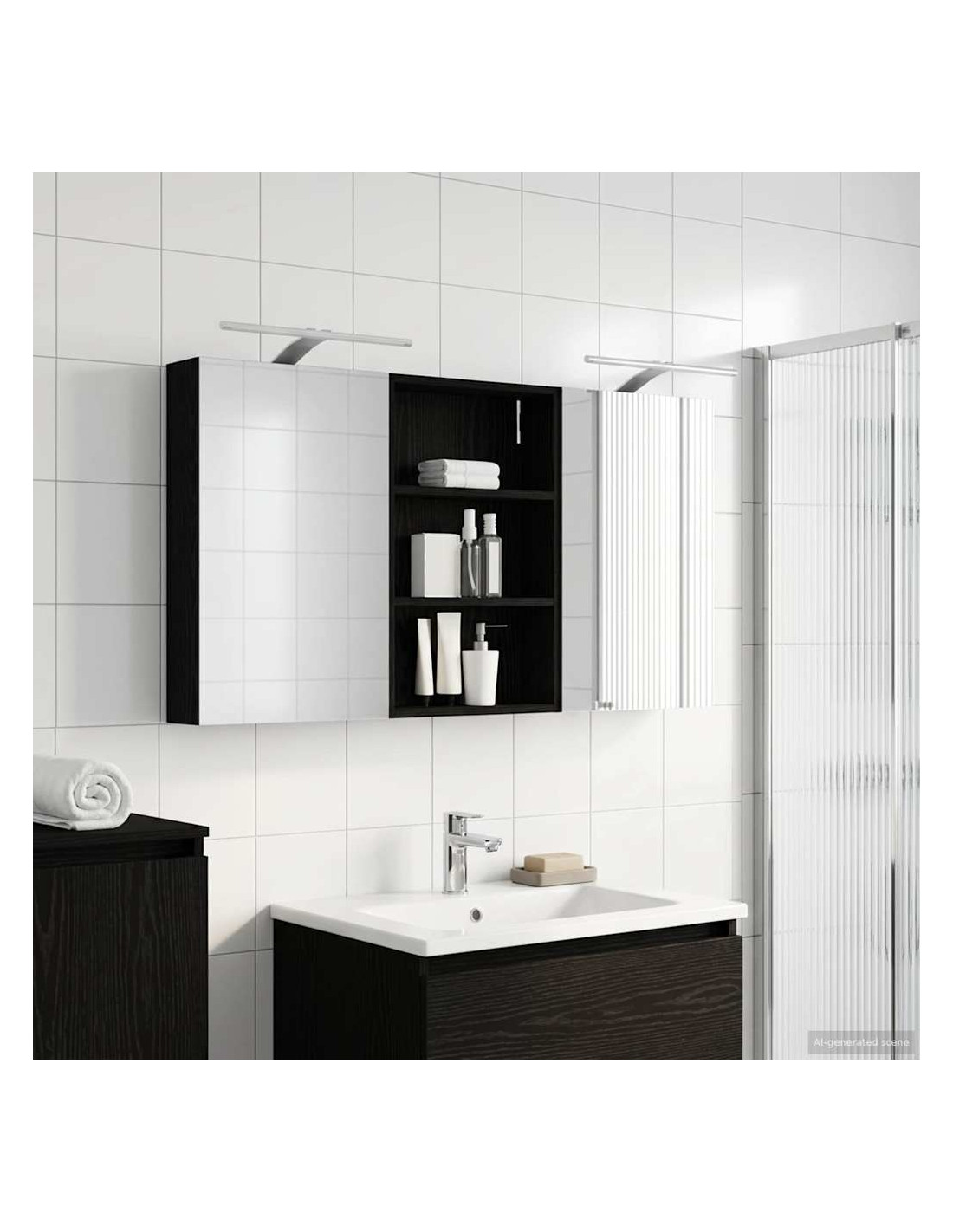 Questo set di armadi moderni per il bagno è il massimo in fatto di stile, combinando un design chic con funzioni pratiche. Creato per chi vive nella modernità, funge sia da spazio di stoccaggio che da decorazione bella, integrandosi perfettamente in ogni bagno. Con tanto spazio grazie alla sua struttura montata a parete, libera il pavimento, rendendo tutto facile da raggiungere. Il set di armadi dà un tocco di freschezza al bagno con lo specchio bifacciale e l'illuminazione LED incorporata, creando un ambiente curato e pronto per l'uso. Costruzione in legno ingegnerizzato Questo set è fatto in legno ingegnerizzato, apprezzato per la sua stabilità e resistenza. Non si deforma né si danneggia facilmente, assicurando un pezzo durevole per l'uso quotidiano. La finitura liscia ne facilita la cura, rendendolo un elemento a bassa manutenzione. Spazio di stoccaggio ampio Progettato per l'utilizzo efficiente, l'armadio da bagno offre tanto spazio con ripiani e porte a cerniera. La disposizione intelligente consente di tenere tutto a portata, garantendo un'organizzazione semplice. Il design salva spazio migliora la funzionalità e riduce il disordine. Specchio bifacciale innovativo Con un specchio bifacciale, questo armadio unisce privacy e visibilità. Il lato esterno è uno specchio standard, mentre quello interno permette una visione discreta, aggiungendo un tocco di classe. Questo elemento arricchisce gli interni moderni grazie alla sua doppia funzione. Illuminazione a striscia LED efficiente Dotato di luci LED USB, illumina gli spazi con una luce bella e a risparmio energetico. Le luci aumentano la visibilità, specialmente di notte, creando un'atmosfera serena e accogliente. Ottimo per chi cerca illuminazione moderna accoppiata a mobili funzionali. Manutenzione e cura semplici Mantenere questo set di armadi è facilissimo. Basta usare un panno morbido e asciutto per le superfici, evitando prodotti chimici aggressivi per preservare il materiale. Queste semplici istruzioni di cura assicurano che l'armadio rimanga un pezzo utile e sempre attuale nel tuo bagno.